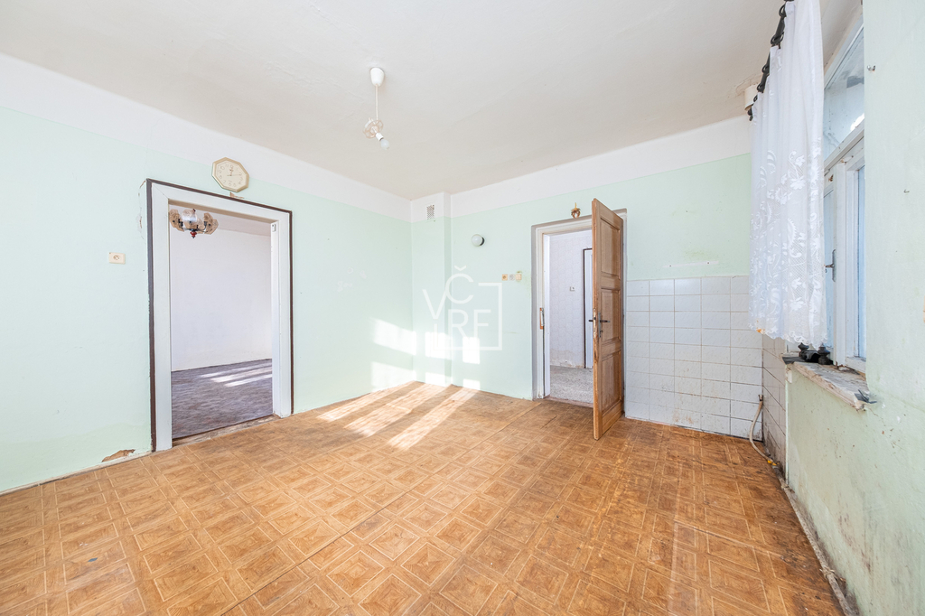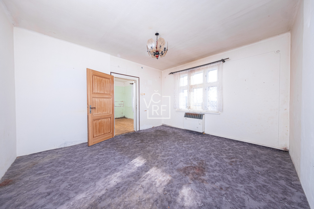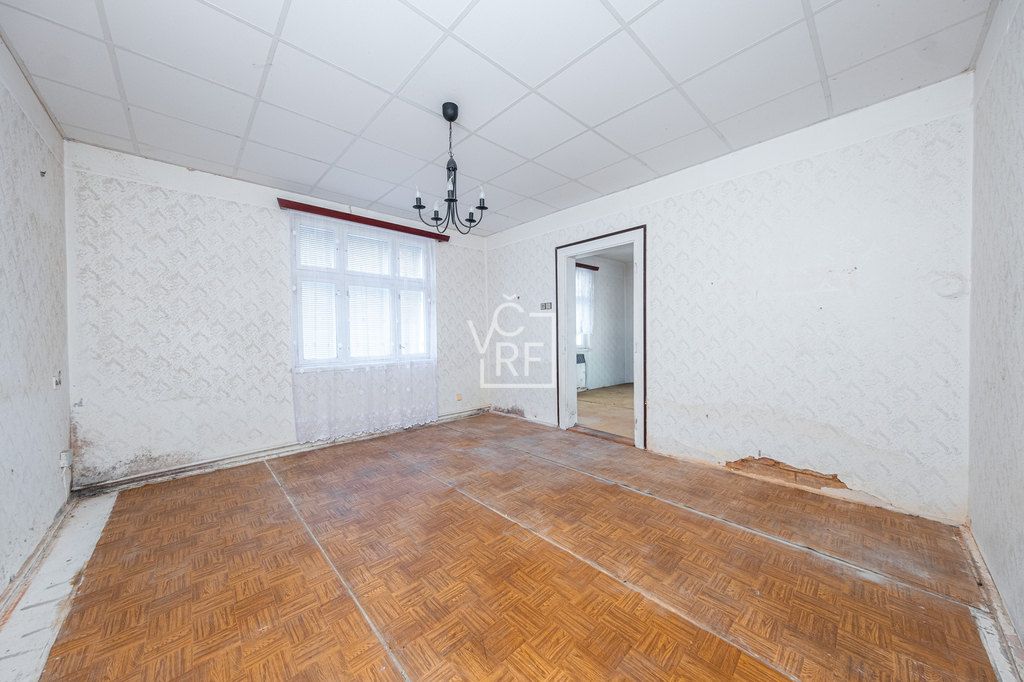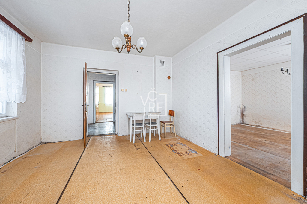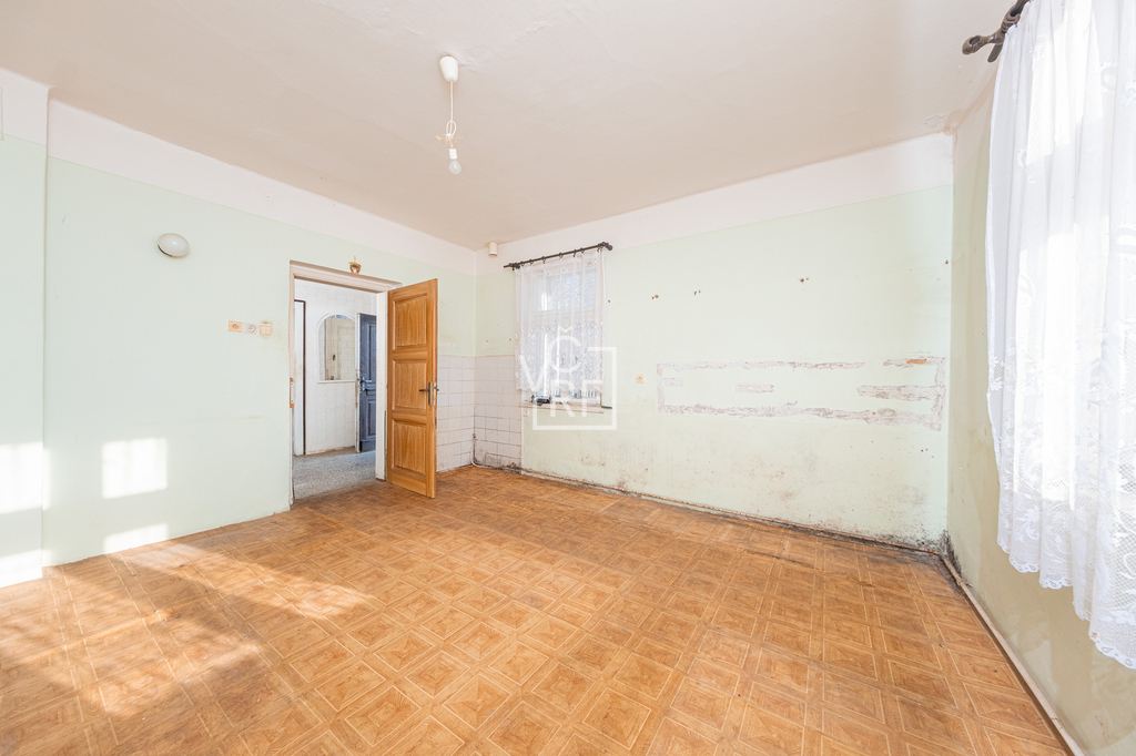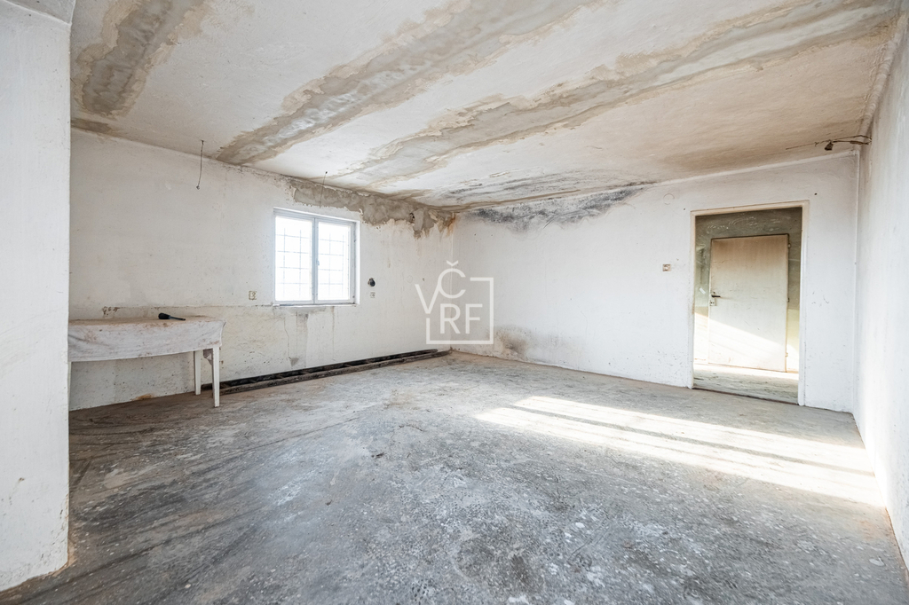 V přízemí rodinného domu se nachází vstupní chodba a 4 pokoje, schodiště (pod schody sklepní prostor). V podkroví se nachází prostor pro půdní vestavbu. Objekt nemá sociální zařízení.