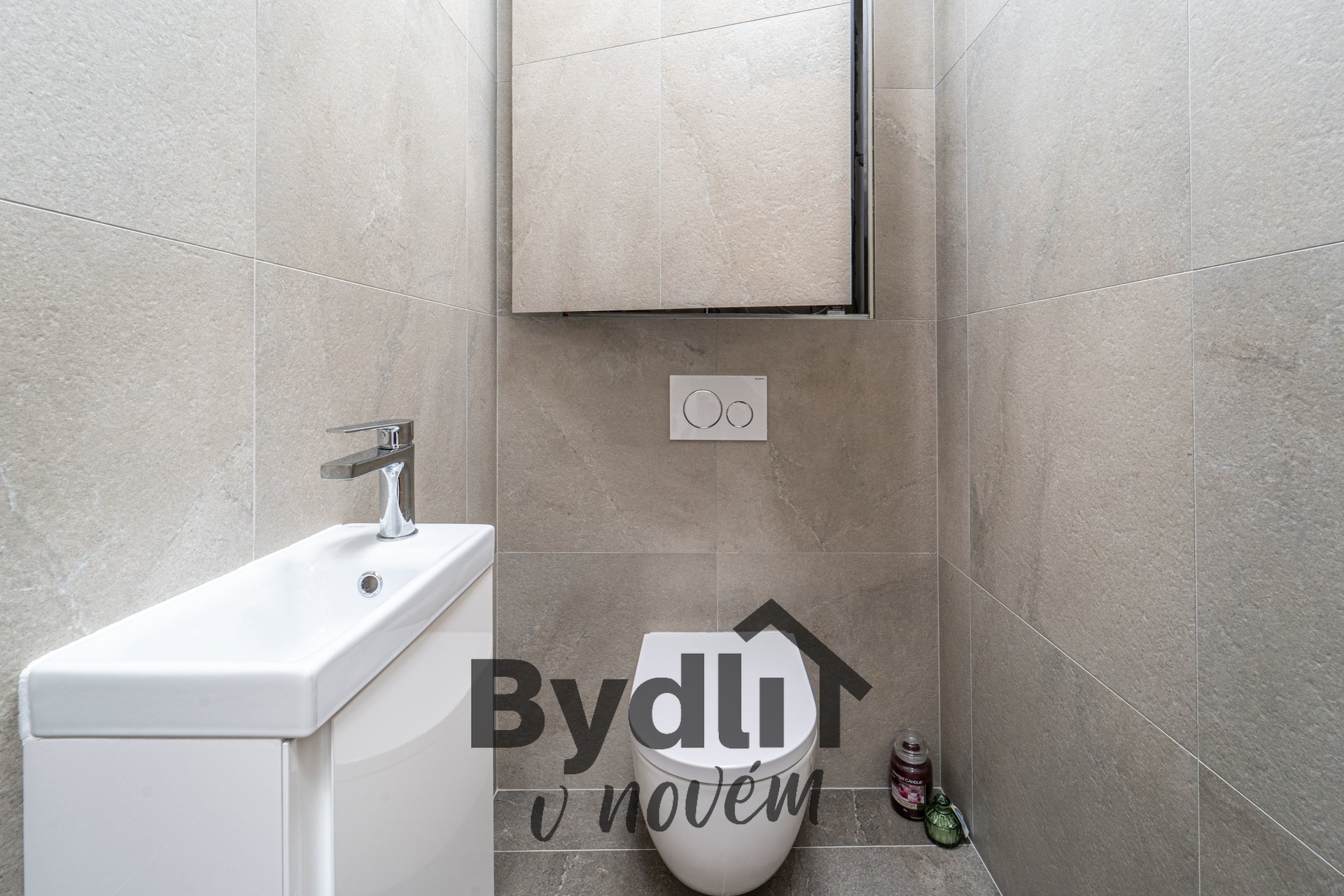 Luxusní koupelna: Koupelna je vybavena moderními obklady, velkou vanou se sprchovou zástěnou a kvalitní sanitou. Vše je navrženo s ohledem na maximální pohodlí a estetiku.