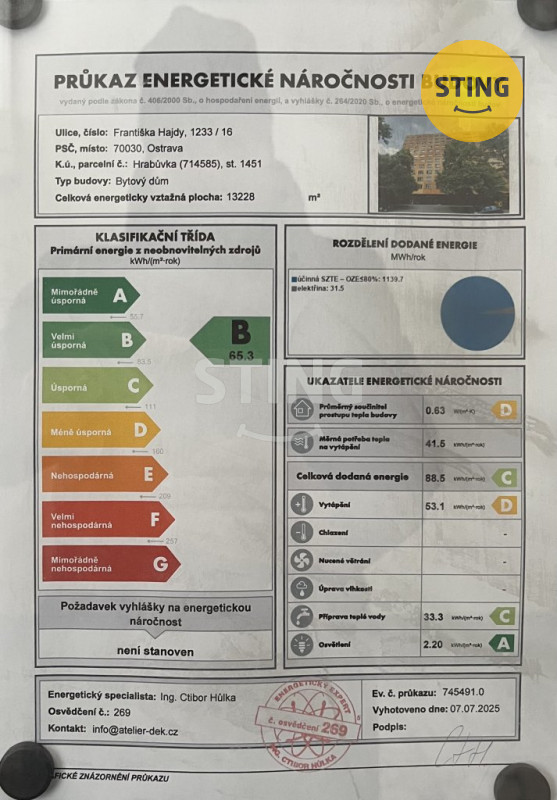 V rámci hospodaření s energií se nemovitost nachází v třídě "B."