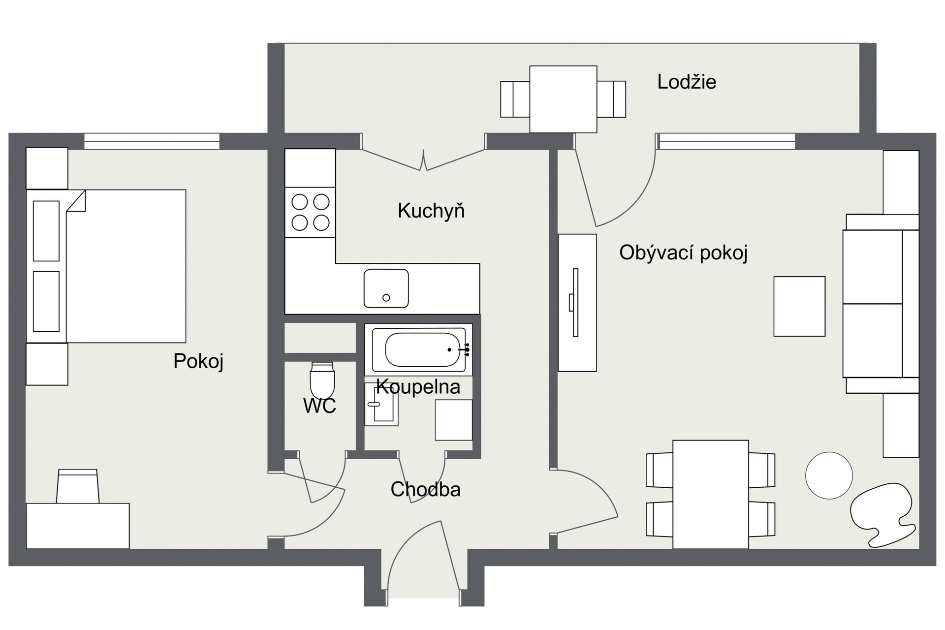 - Dispozice bytu: 2+1