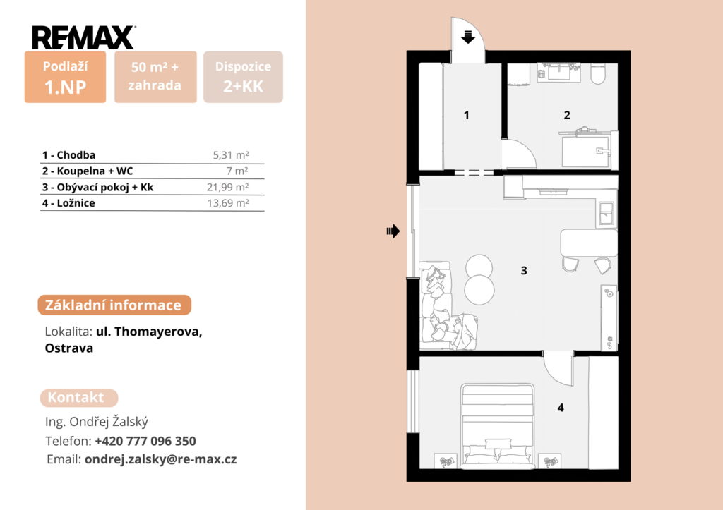 | Dispozice/podlahová plocha: | 2+kk/50 m² |