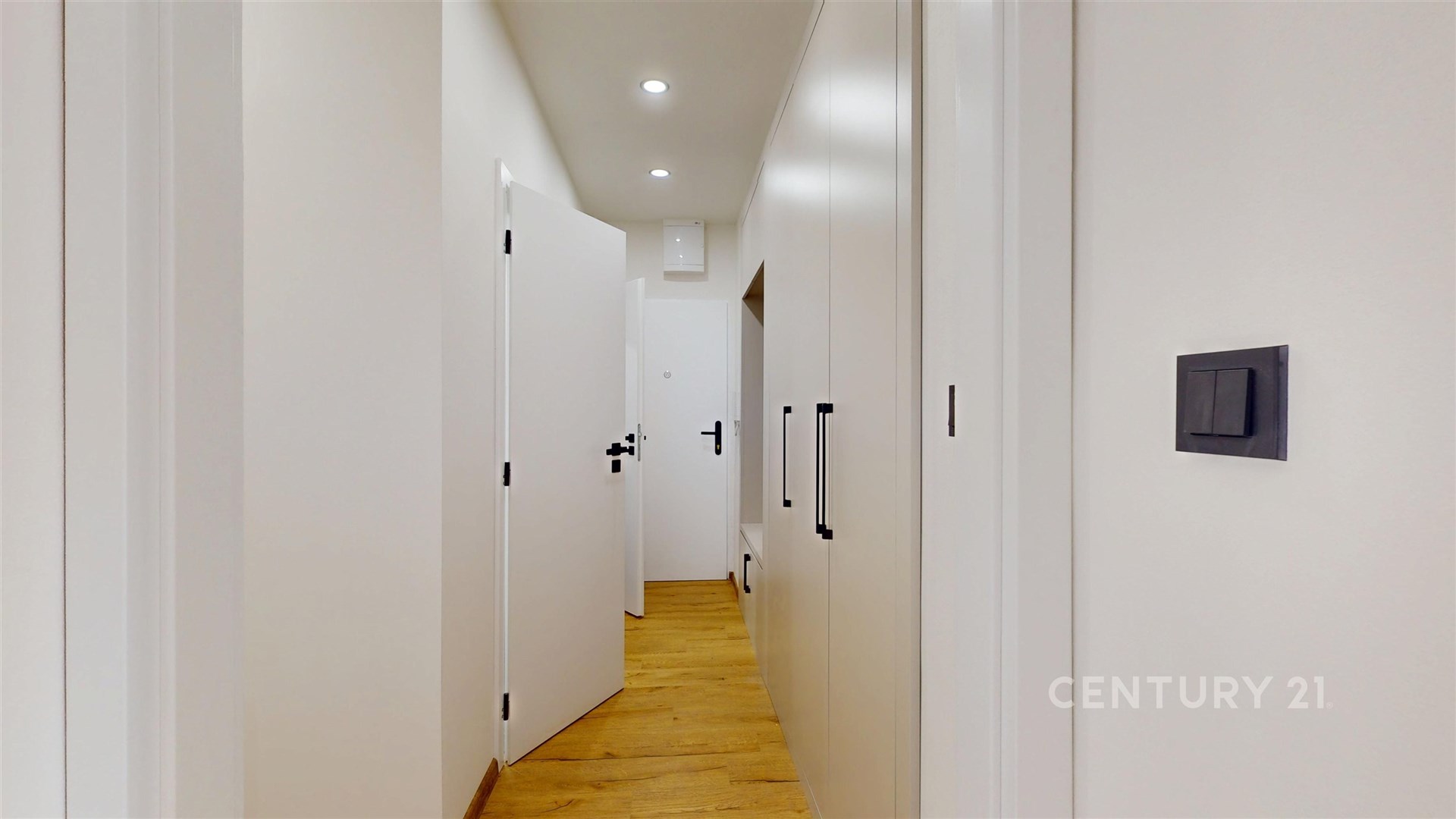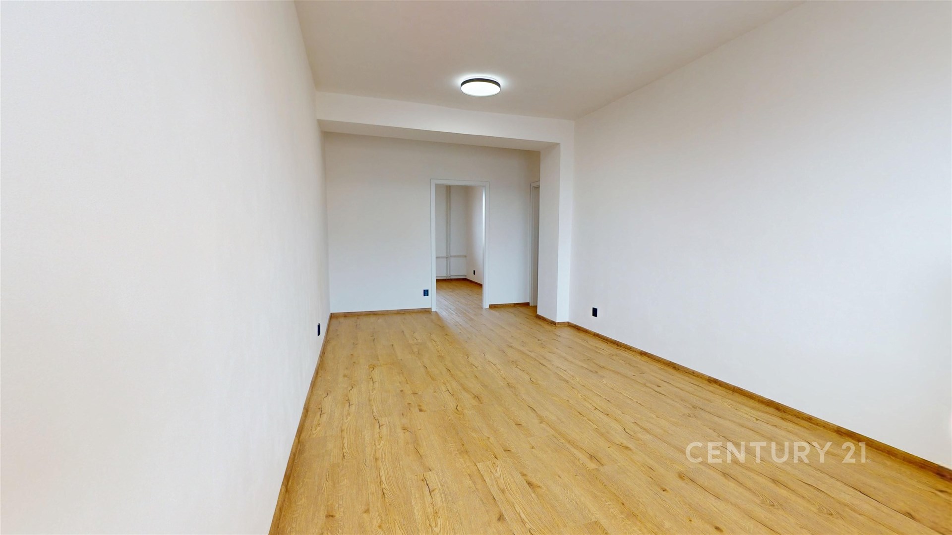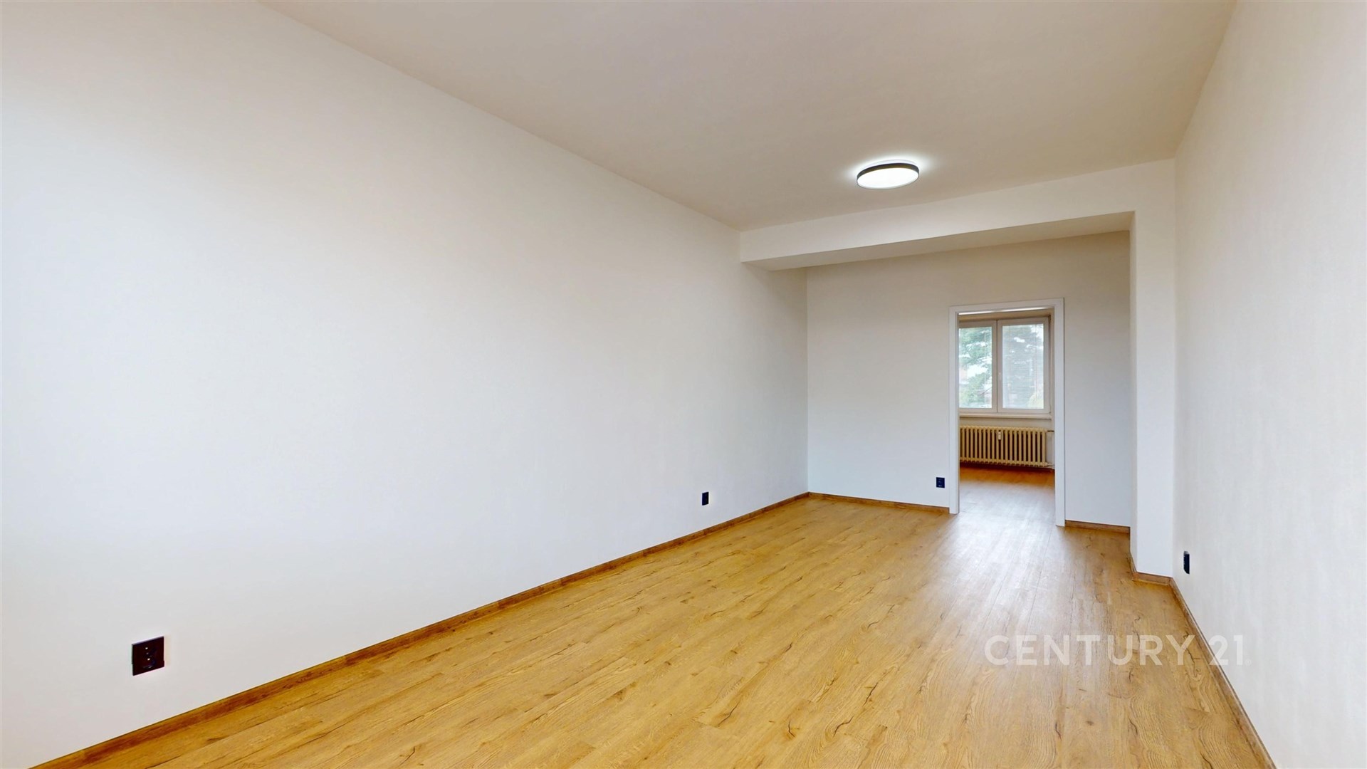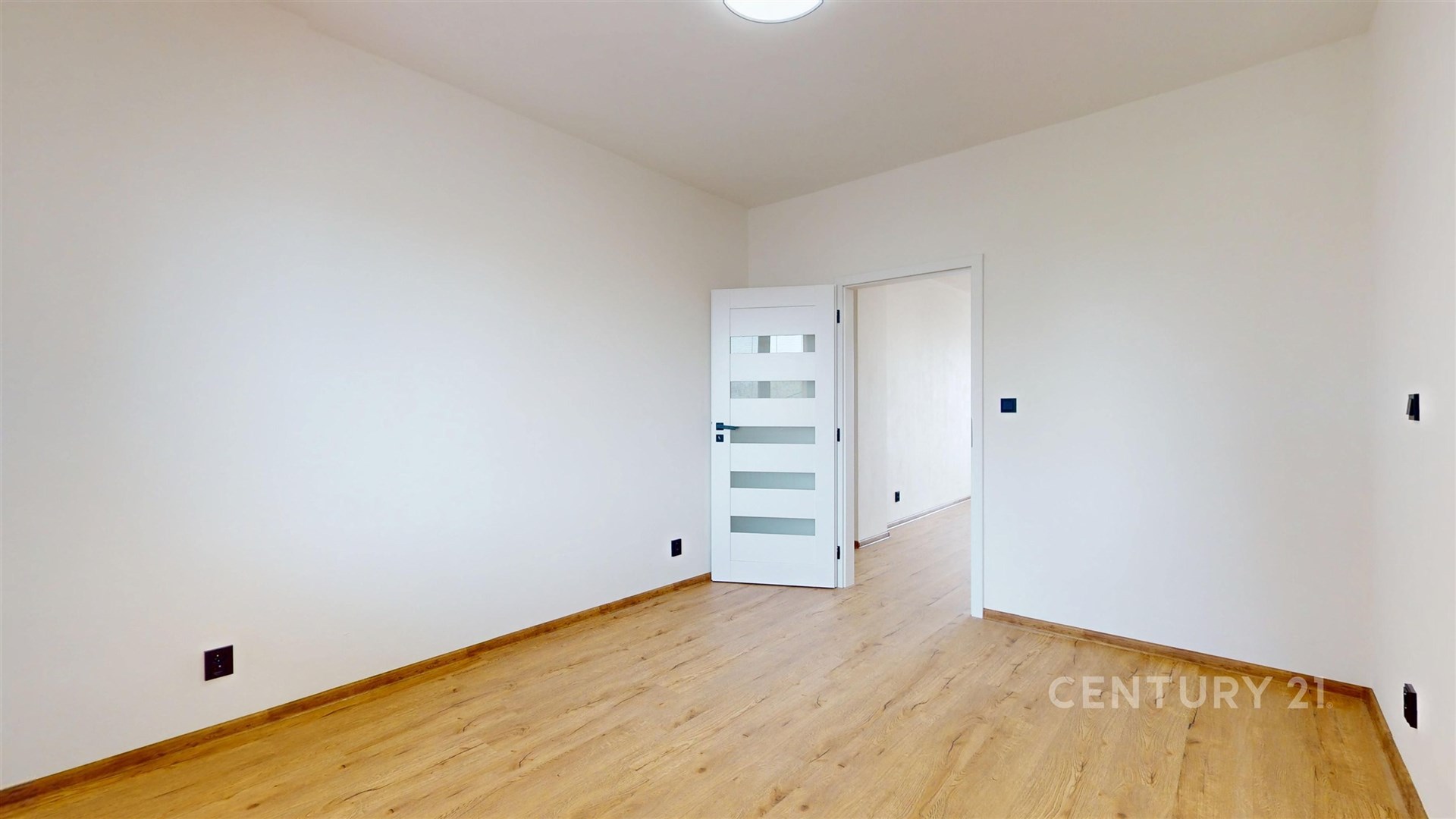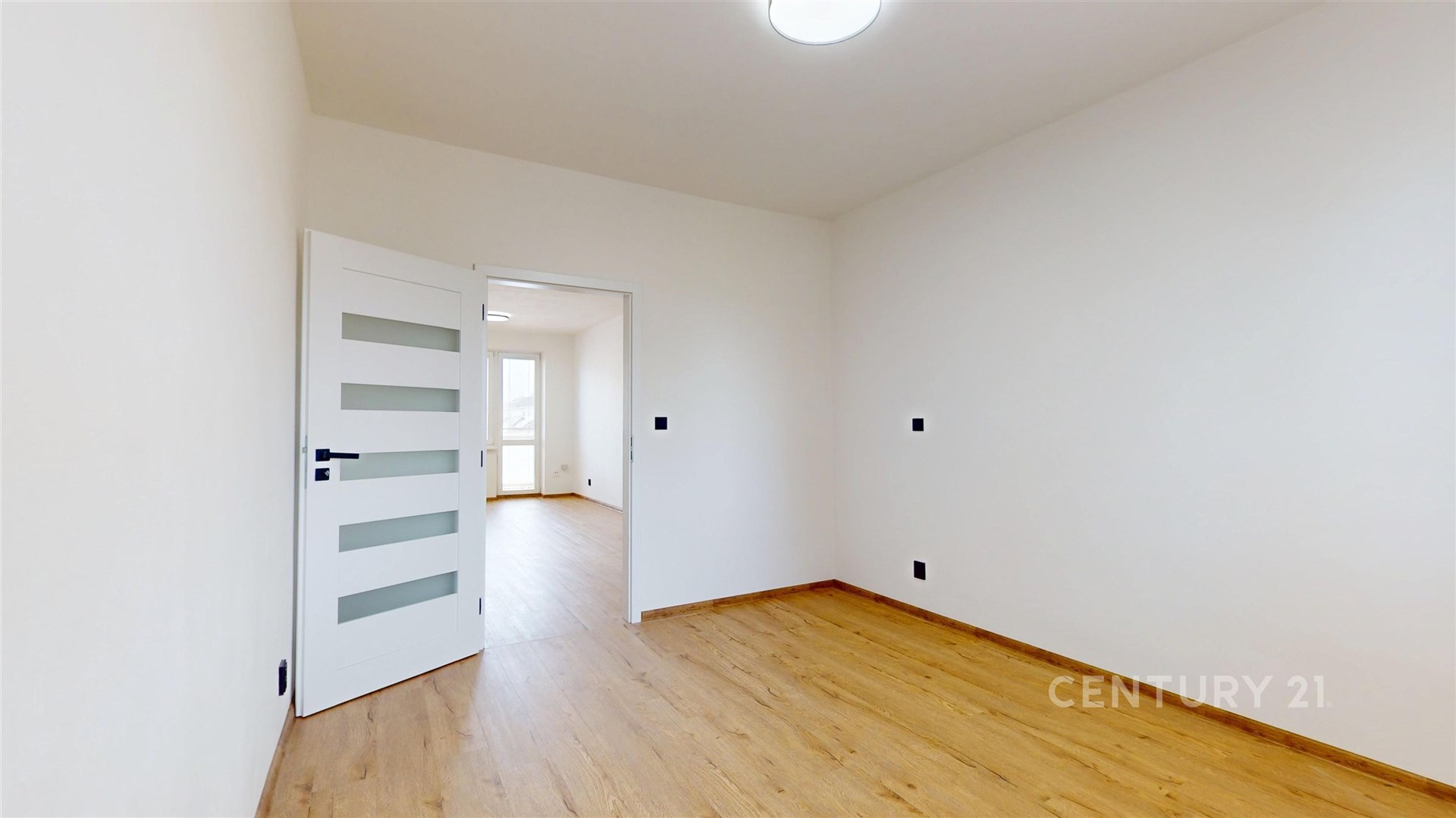 Dva samostatné pokoje nabízejí flexibilní využití jako prostorný obývací pokoj a ložnici, kde atmosféru podtrhují kvalitní podlahy a vkusné interiérové dveře.