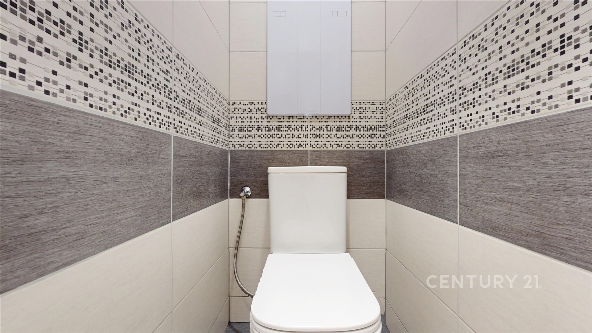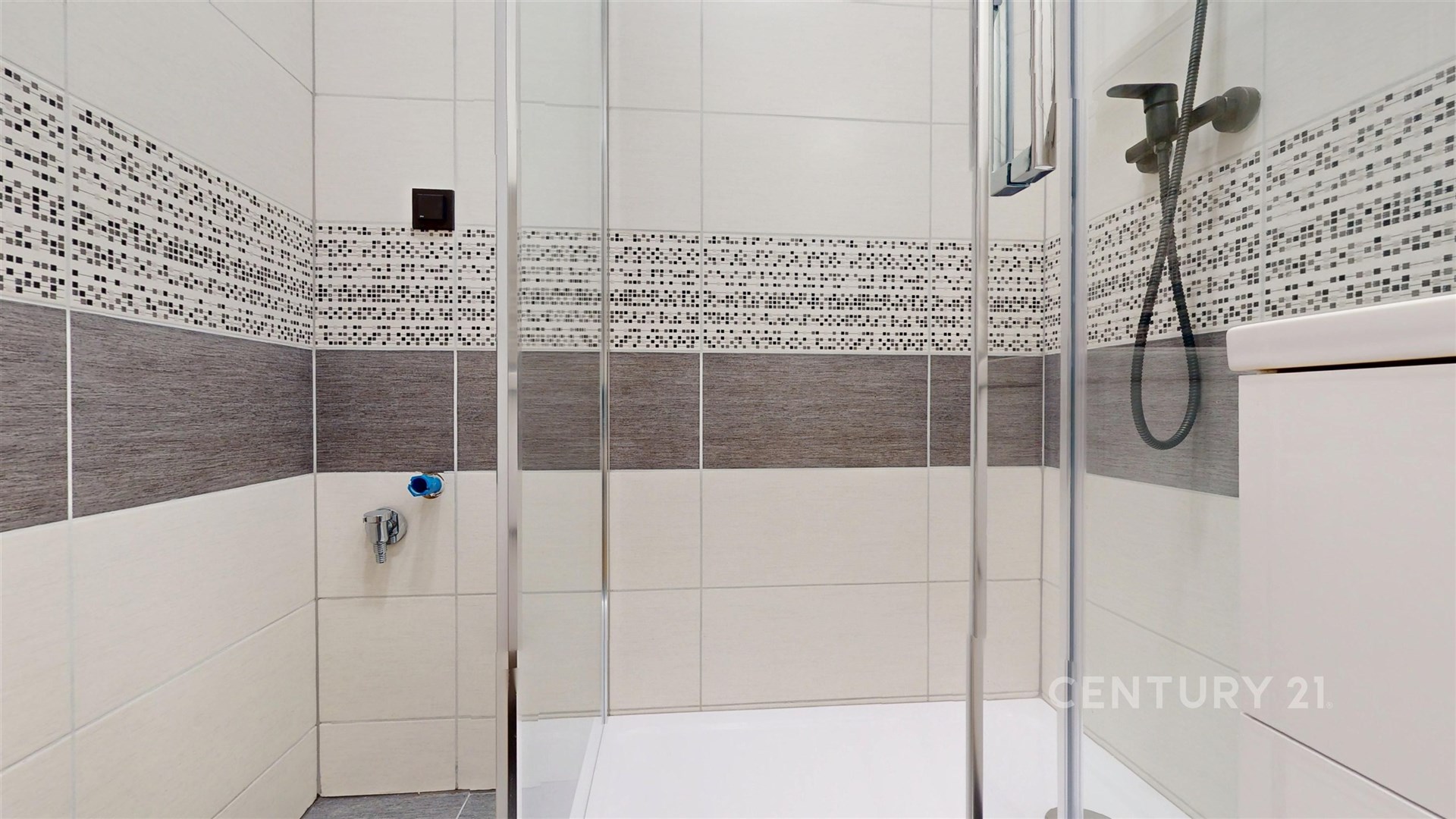 Koupelna s moderním sprchovým koutem je oddělená od toalety pro zvýšení komfortu.