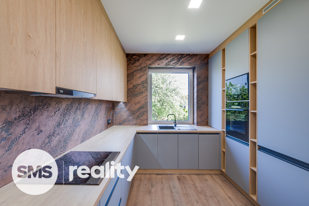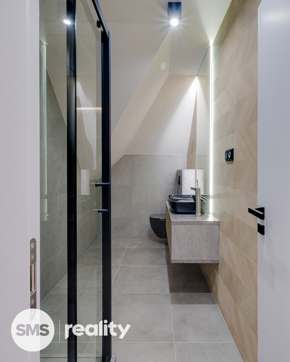 Rekonstrukce byla původně připravována pro vlastní bydlení majitele, proto zde naleznete pouze ty nejkvalitnější materiály a precizní detaily: betonové stěrky, luxusní skleněné zábradlí, kamenické rohy, vestavěné prvky na míru a moderní LED osvětlení.