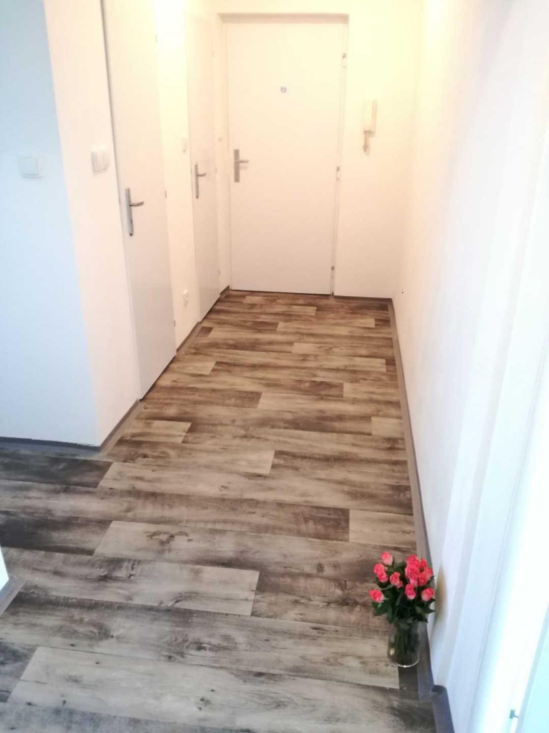 Byt se nachází ve 4. podlaží z 12.podlažního panelového domu. Byt je po kompletní rekonstrukci z roku 2018 a má vyzděné jádro, podlahy, rozvody, omítky, interiérové dveře.