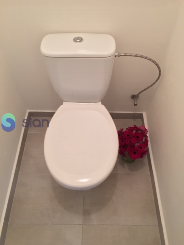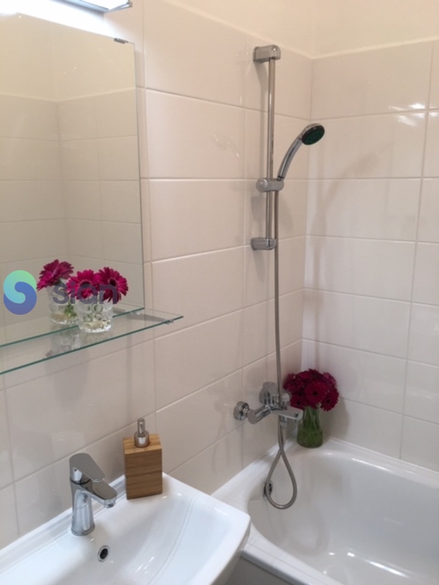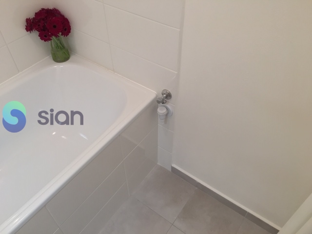 Koupelna s vanou a umyvadlem s možností připojení pračky, toaleta je odděleně. Kuchyňská linka je opatřena plynovým sporákem a elektrickou troubou s možností připojení pračky nebo myčky.