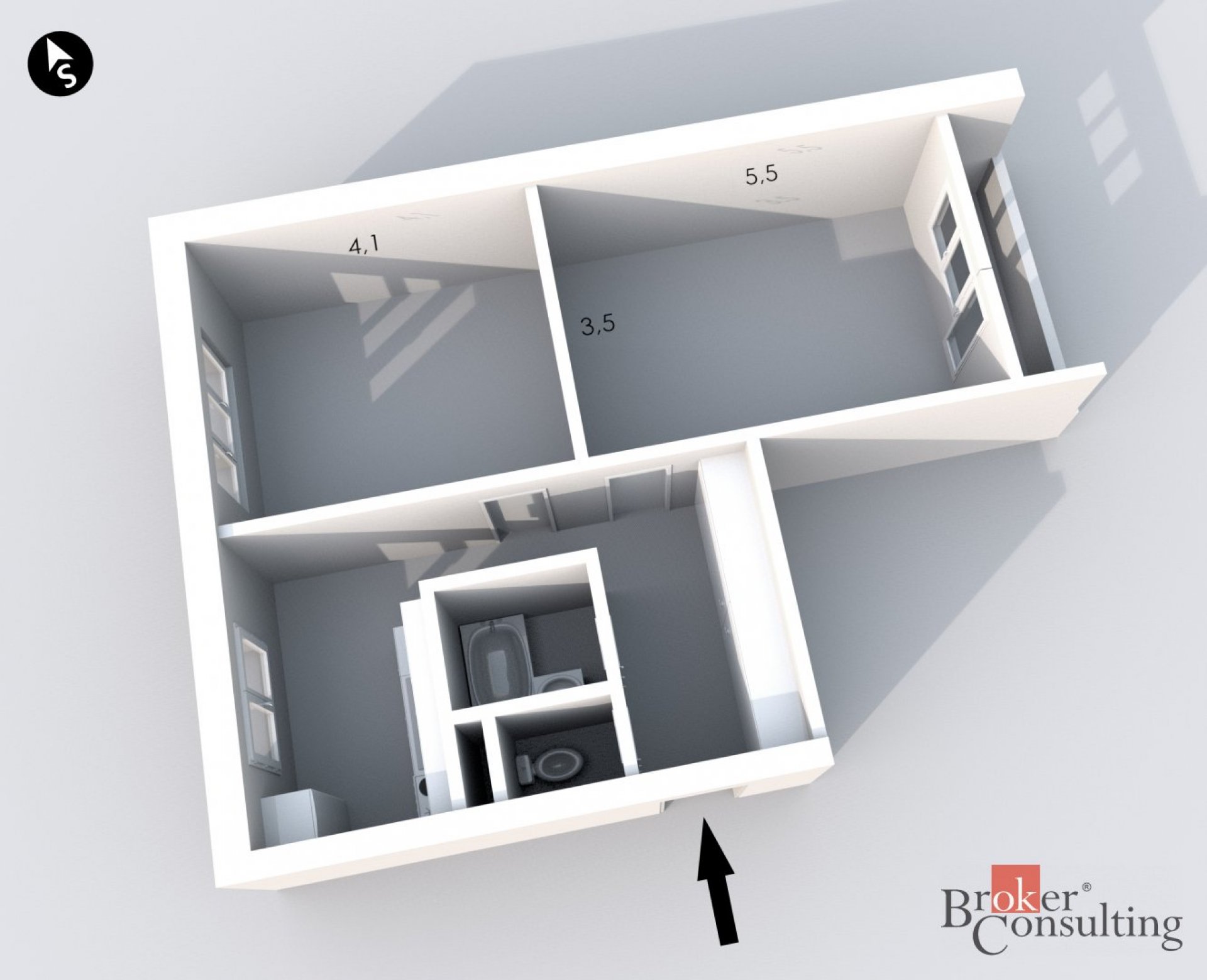 - Dispozice bytu: 2+1