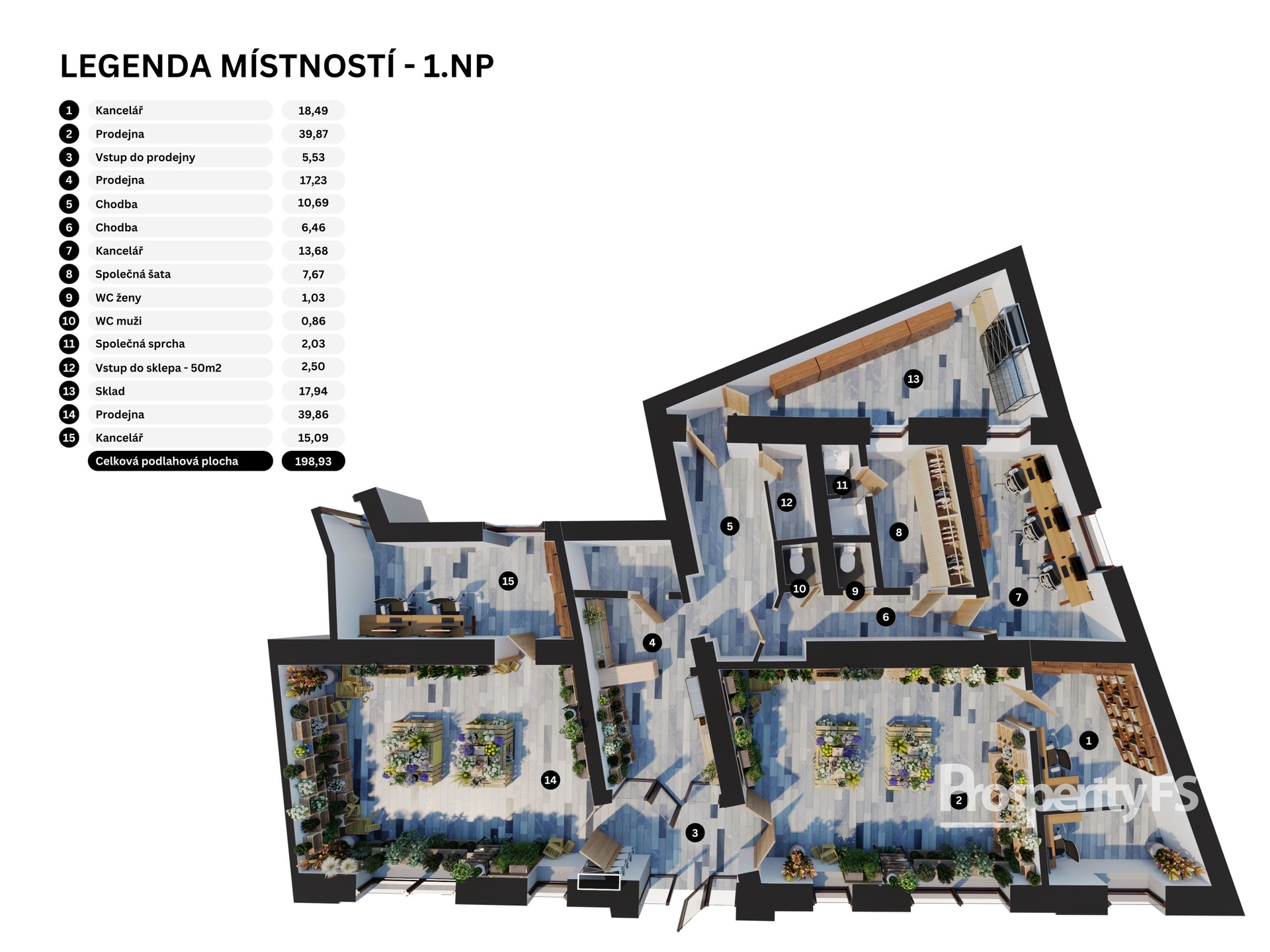 - Zavedené květinářství v přízemí (198,93 m² včetně 50 m² sklepu) – dlouhodobě fungující provoz s nájemní smlouvou. Stabilní příjem a jistota pro investora.