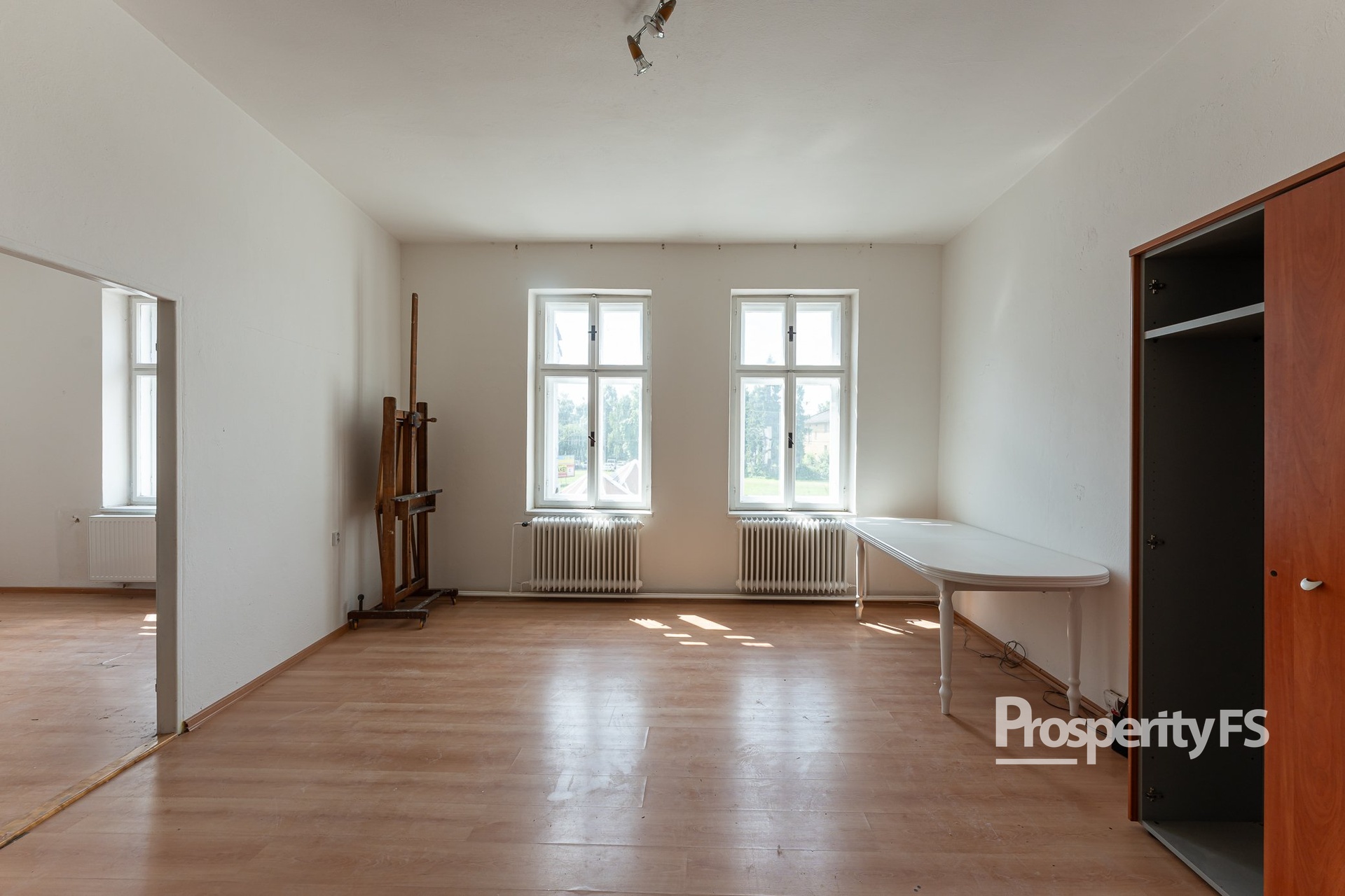 - Nebytové prostory v prvním patře – dříve využívané jako salon, nyní připravené k novému účelu.