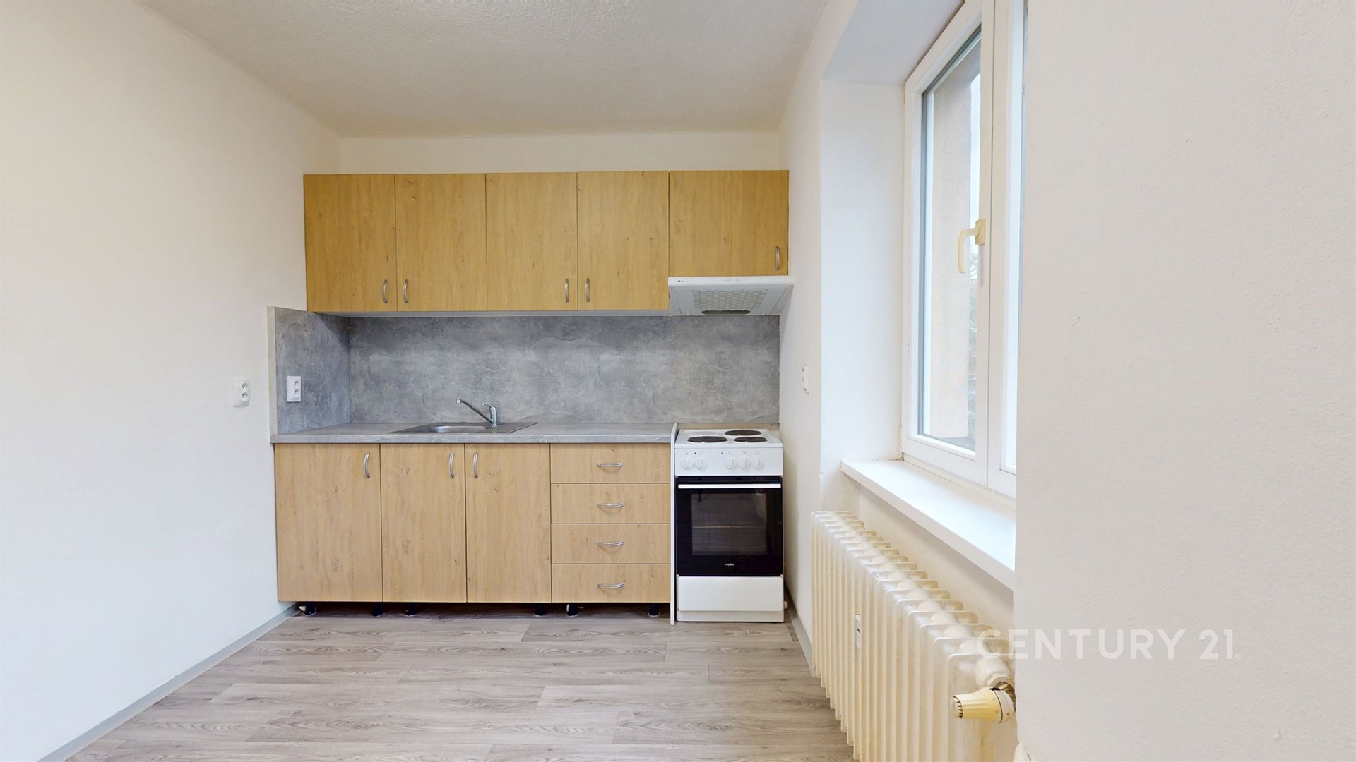 Druhou místností je prostorná kuchyně s rok starou kuchyňskou linkou, kde nechybí plynový sporák a elektrická trouba.