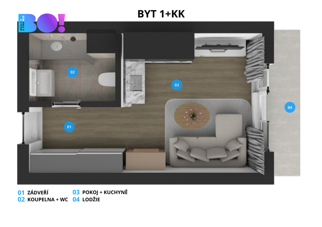 | Dispozice/podlahová plocha: | 1+kk/29 m² |