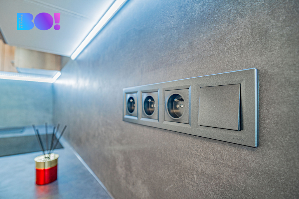 Vestavěná trouba, mikrovlnná trouba i pračka tvoří funkční řešení, které šetří místo a usnadňuje každodenní fungování.