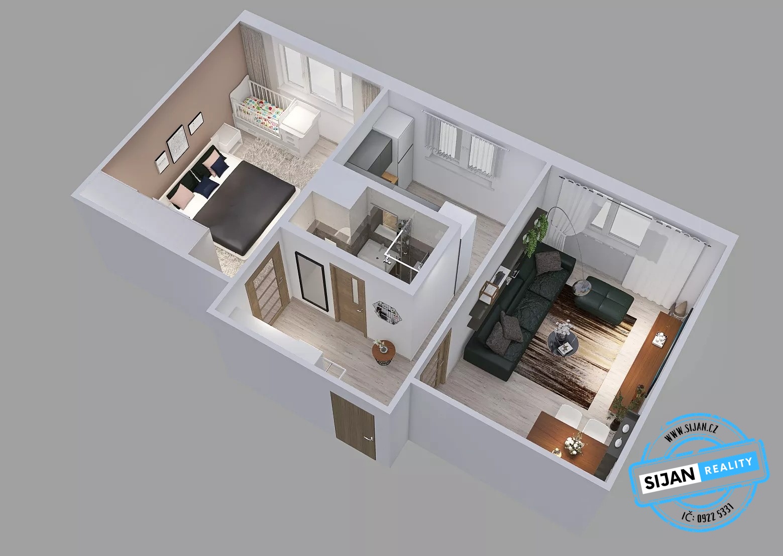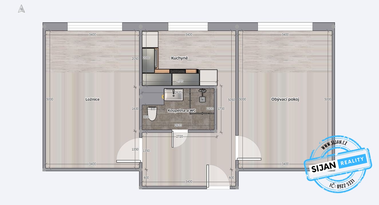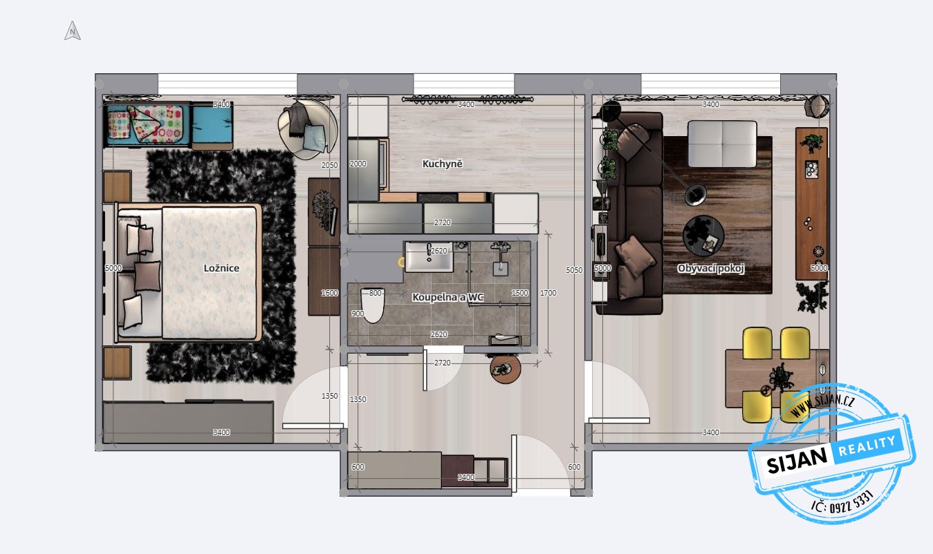 - Dispozice bytu: 2+1