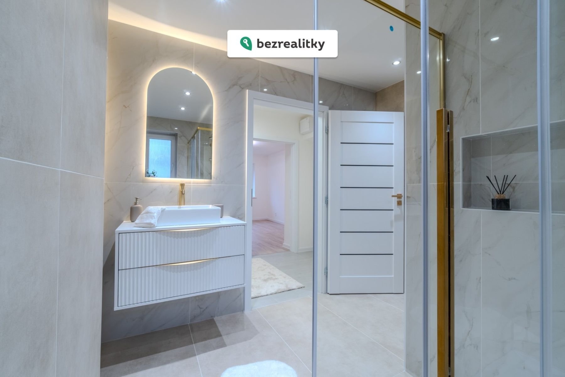Byt prošel kompletní a velmi kvalitní rekonstrukcí, při které byl kladen důraz na funkčnost a moderní design. Interiér je laděn do elegantních tónů se zlatými prvky.