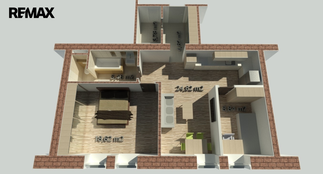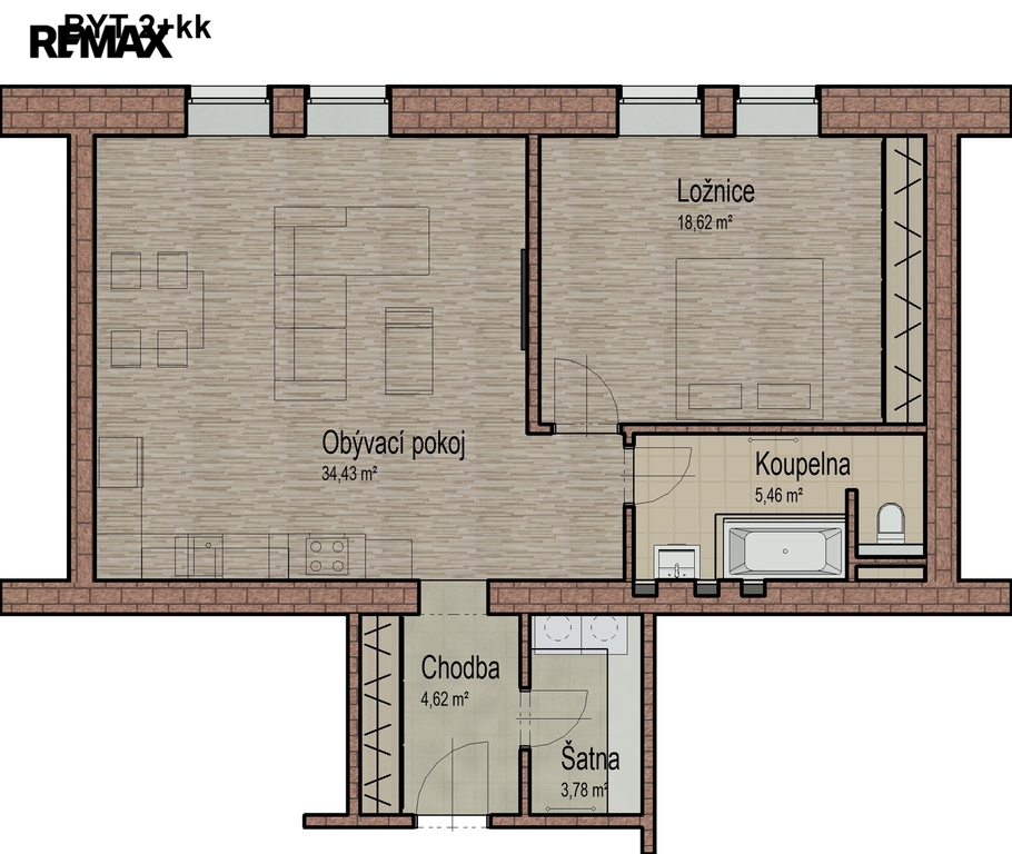 - Dispozice bytu: 2+kk