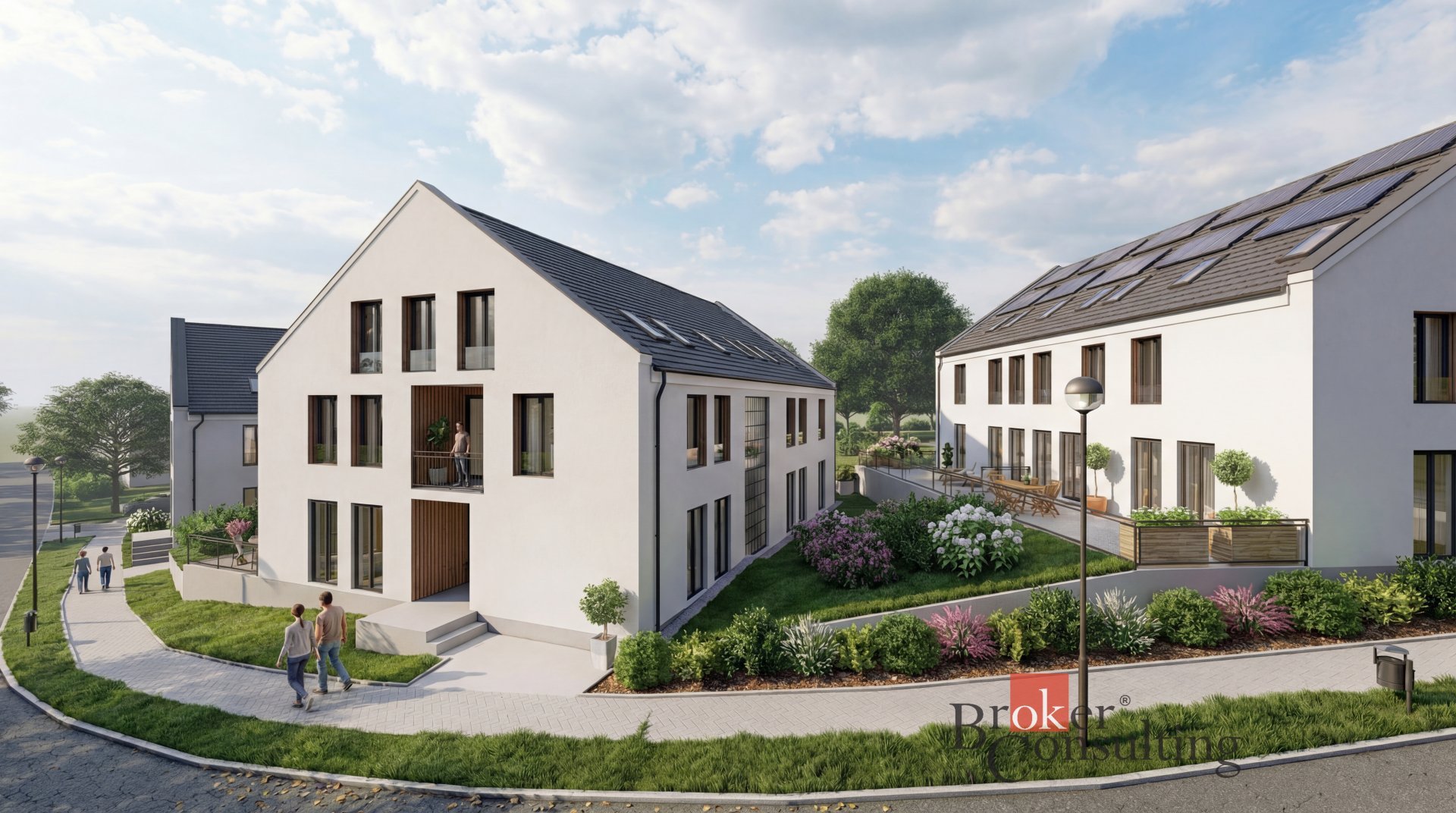 Moderní, ale nadčasová architektura s čistými liniemi, sedlovými střechami a velkými okny. Domy působí elegantně, svěže a přirozeně zapadají do okolní zástavby. Důraz je kladen na kvalitní provedení, funkčnost a dlouhodobý komfort bydlení.