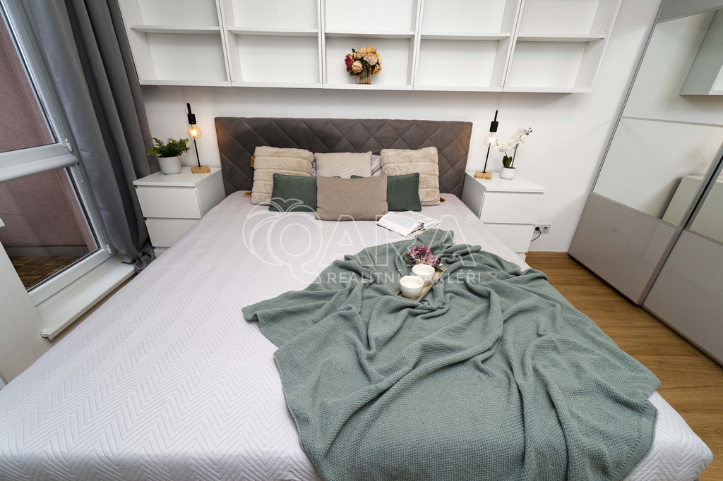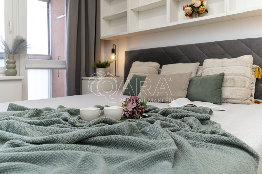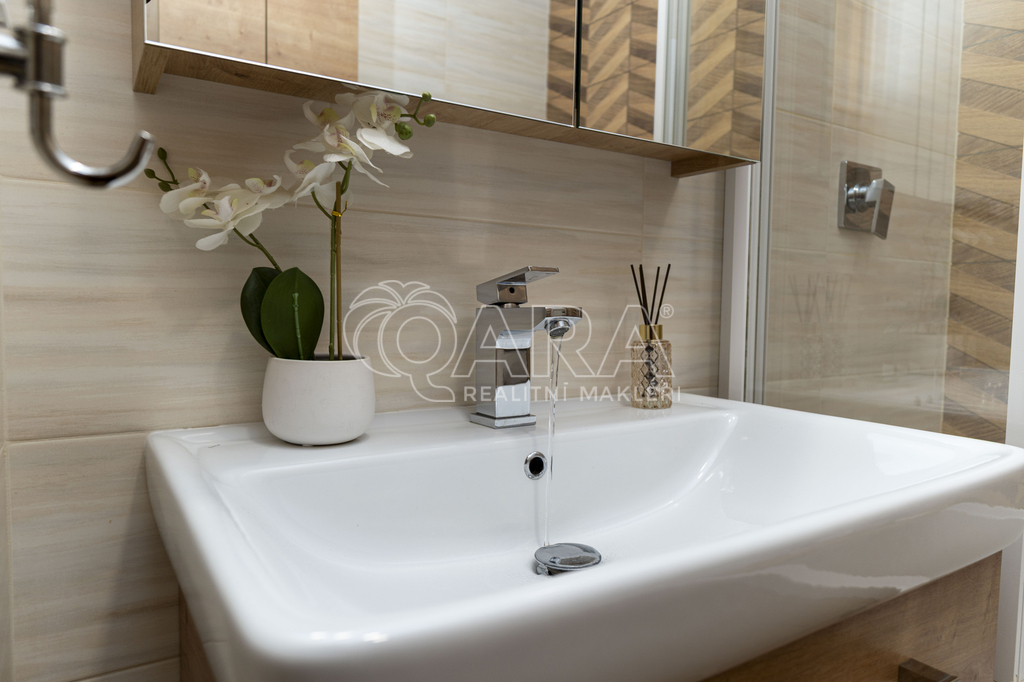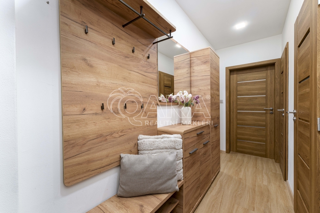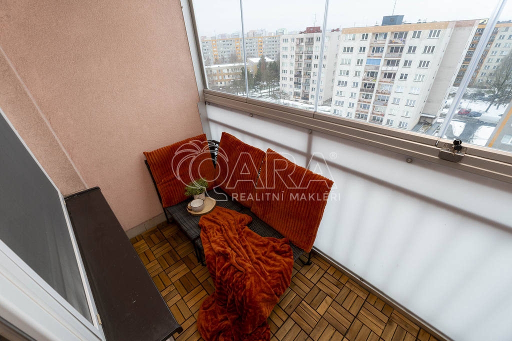 Velkým benefitem bytu je zasklená lodžie, která rozšiřuje obytný prostor a nabízí příjemné místo jak pro ranní kávu, tak pro večerní sklenku vína. Za hezkého počasí se zde otevírá výhled až na Lysou horu, což dodává bydlení jedinečnou atmosféru.