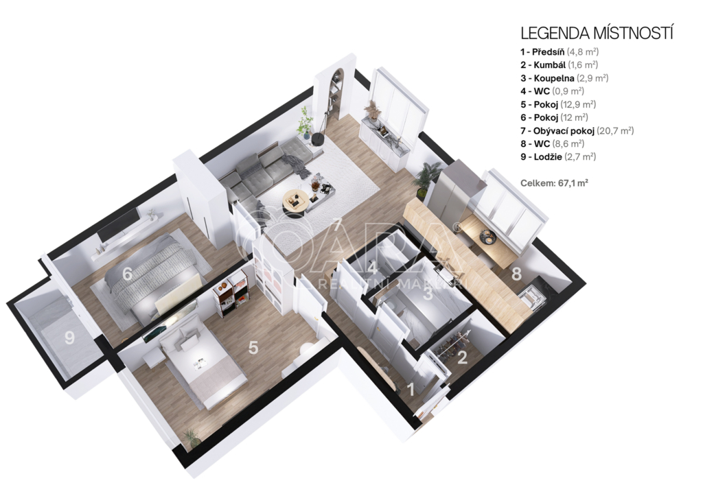 - Lodžie: 3 m²