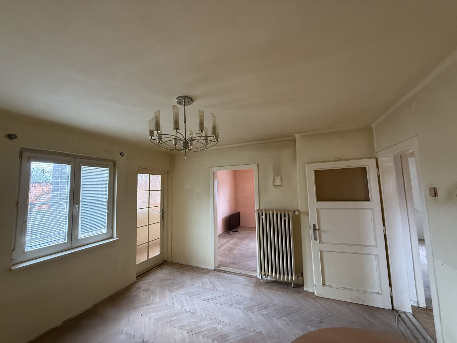 Tři pokoje, koupelna s vanou a s WC, kuchyně, pracovna, velký sklep v suterénu domu. Pozemek oplocen s vjezdem až před dům. Majitel domu má možnost využívat zahrádku za domem i část prostranství před domem. Podlahy ve všech pokojích jsou pokryty dřevěnými parketami. Koupelna obklad a dlažba - rekonstrukce v roce 2001. Součástí bytu je i výklenek u jednoho z pokojů vhodný jako pracovna nebo šatna u ložnice. Byt má plastová okna jejichž výměna proběhla v roce 2001. Vytápění je centrální, vodovod veřejný, elektřina, plyn není.