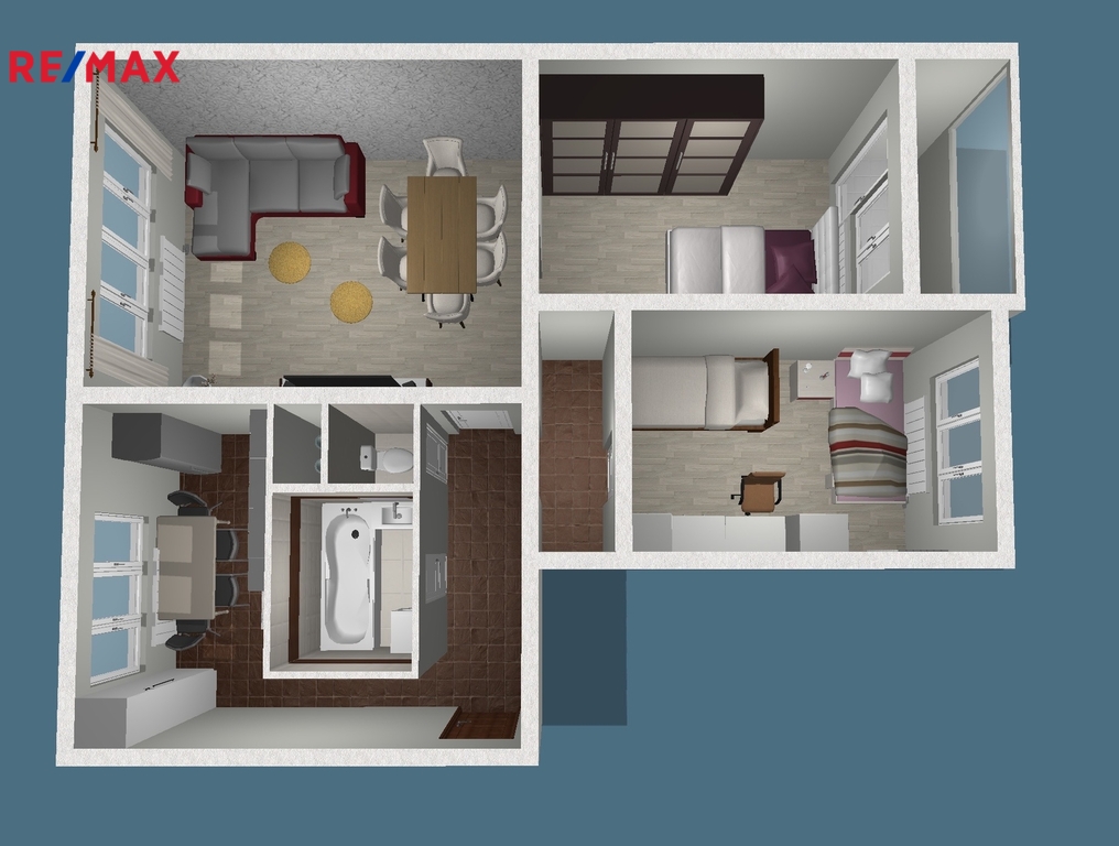 Bytová jednotka byla před čtyřmi lety kompletně rekonstruována včetně rozvodů elektřiny. Celková užitná plocha bytu (včetně lodžie - 3,2 m2 a sklepu-3 m2) je 75 m2.