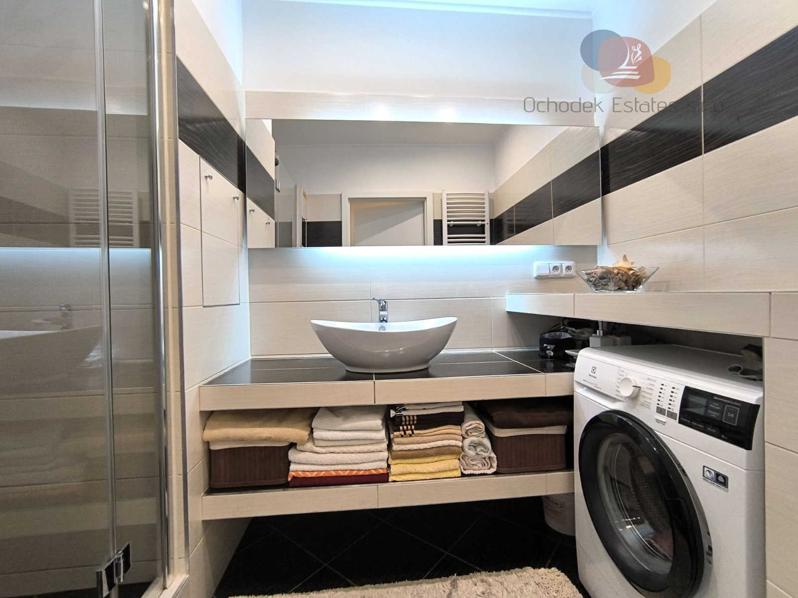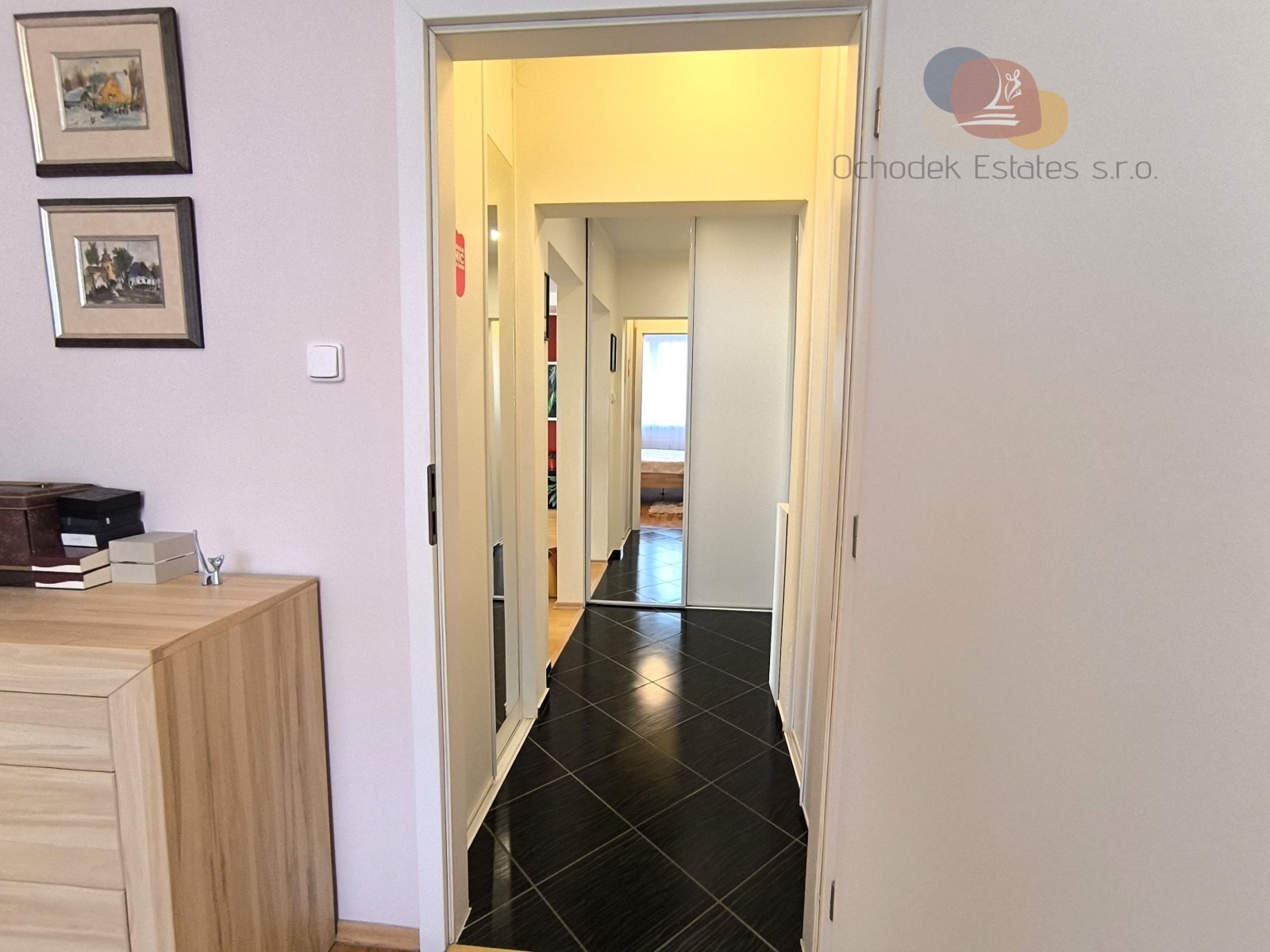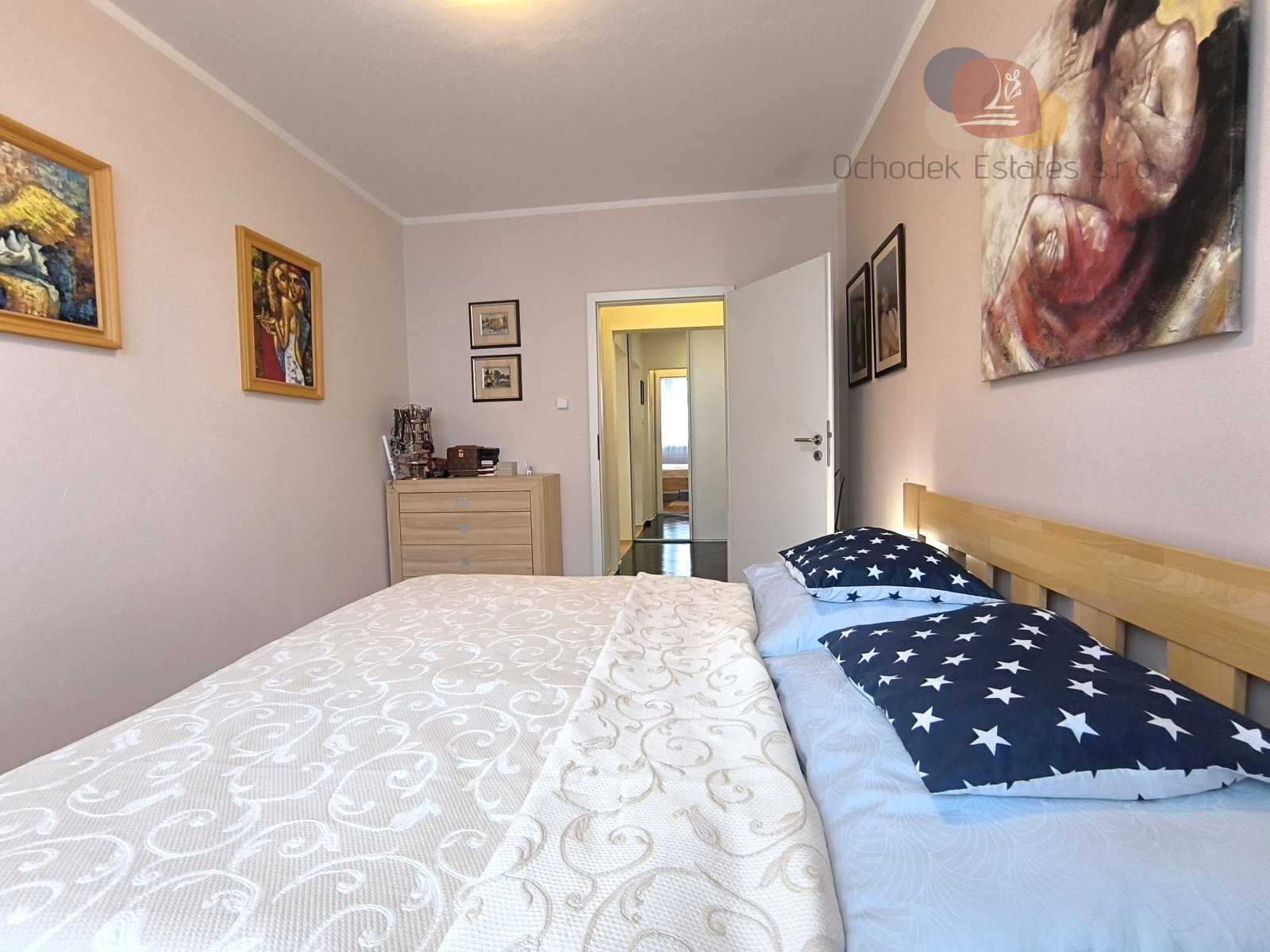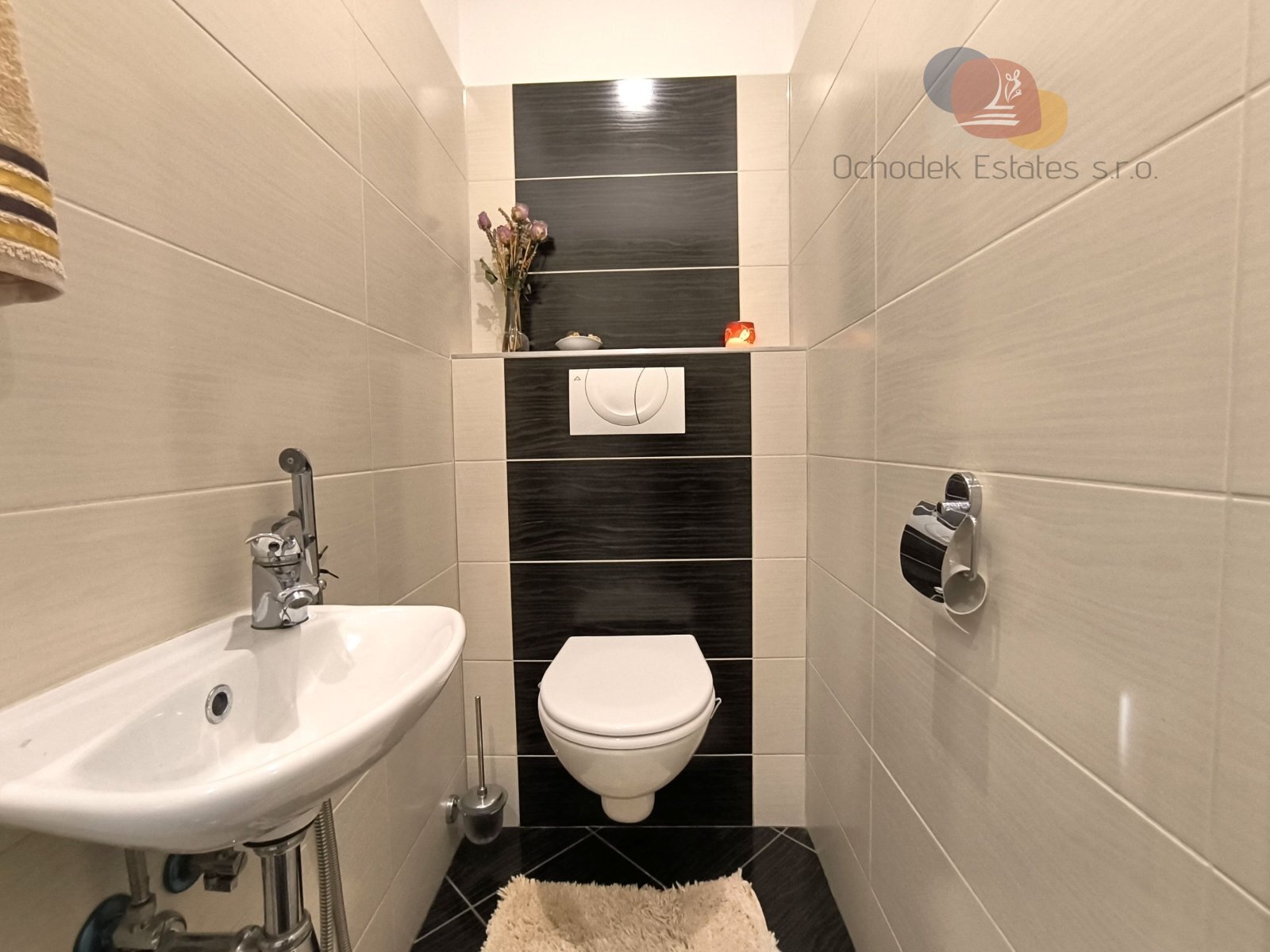 Dále jsou tu dvě samostatné neprůchozí ložnice, kde jedna z nich má i zasklenou lodžii. WC je samostatně, koupelna je laděná do elegantní hnědobéžové.