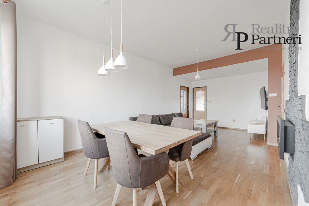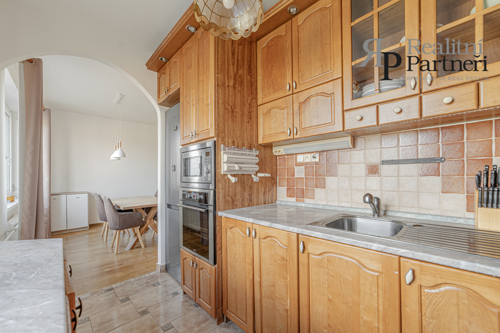 Byt je tvořen kuchyní propojenou s obývacím pokojem, 3 samostatnými pokoji z nichž má jeden vstup na balkón a v dalšim pokoji se nachází malá šatna. Dále je tvořen samostatnou toaletou a koupelnou. K bytu náleží sklepní kóje.