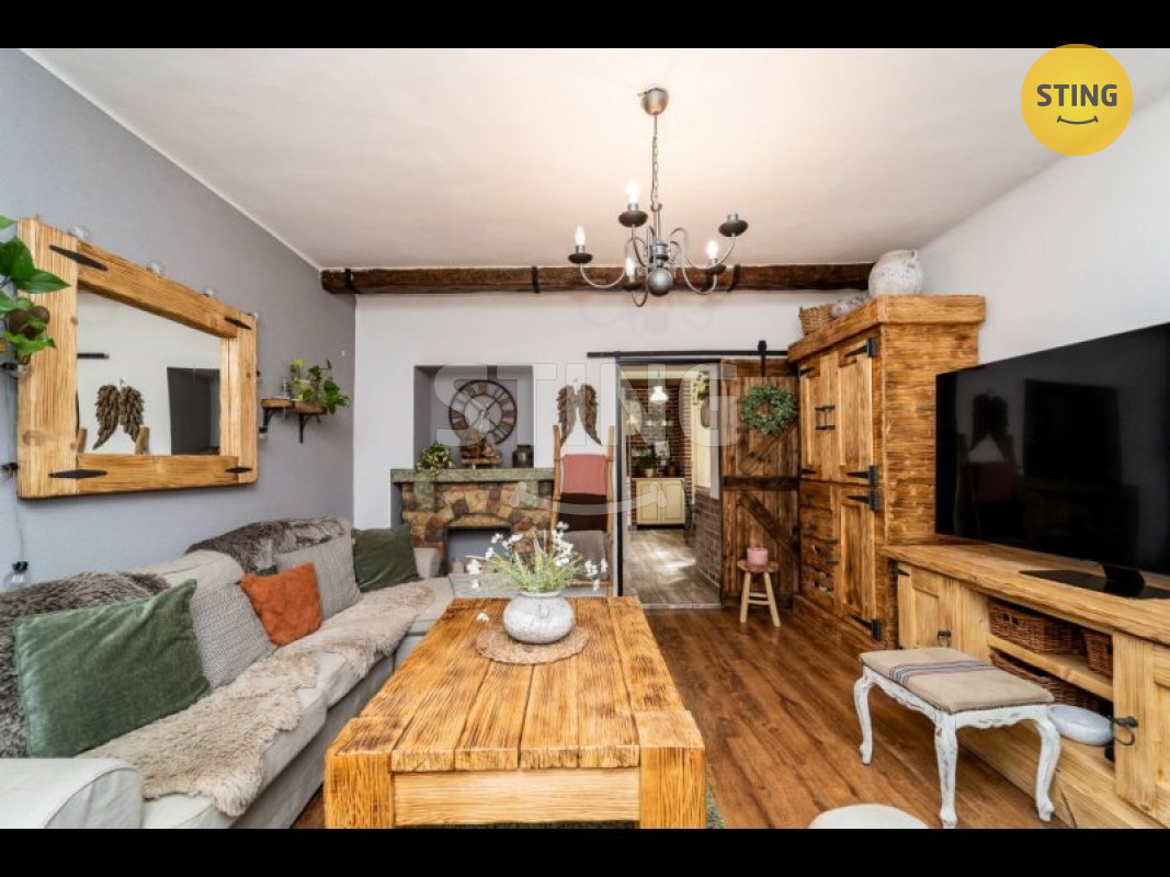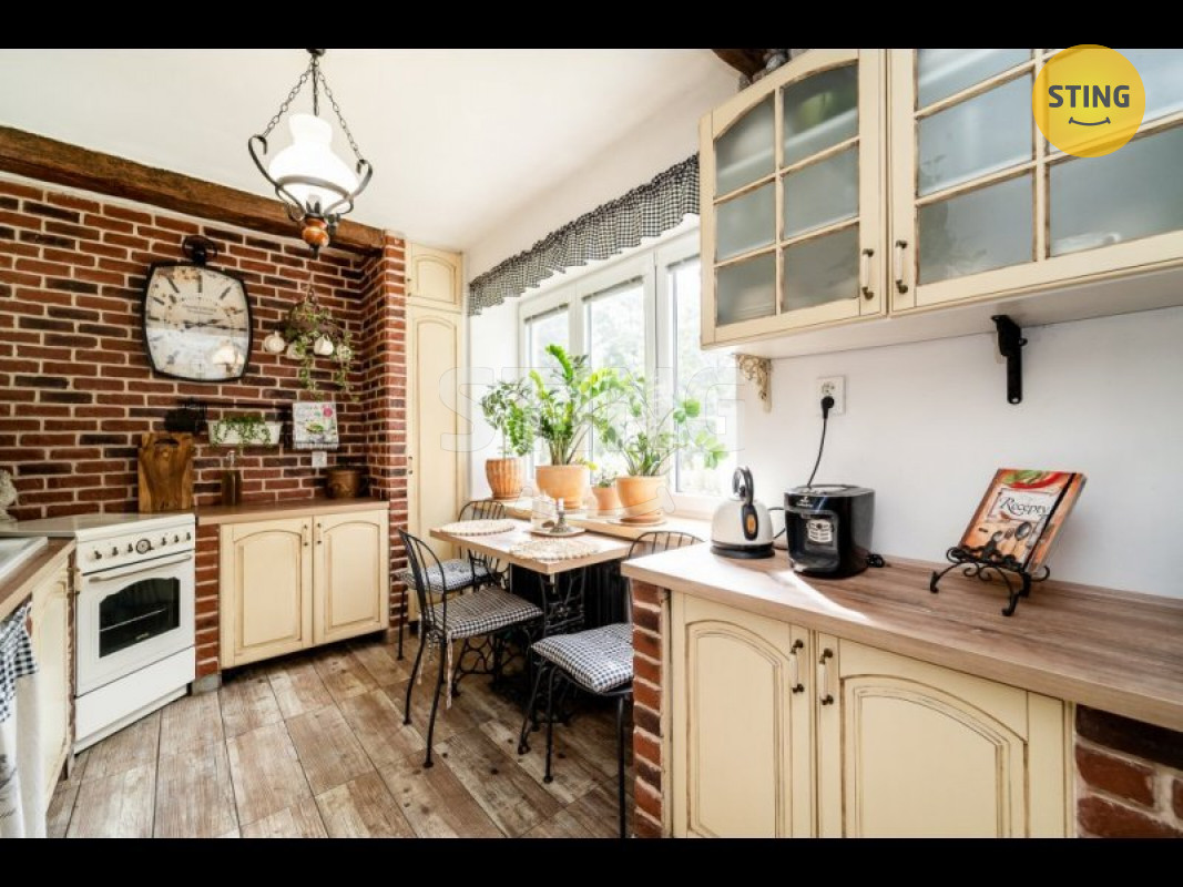 Milovníky masivního nábytku potěší, že stylové vybavení, které dotváří jedinečnou atmosféru bytu, je součástí prodeje.