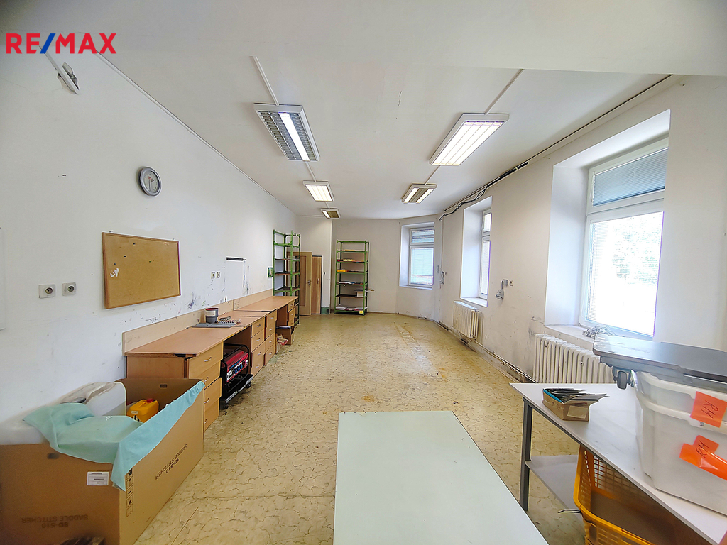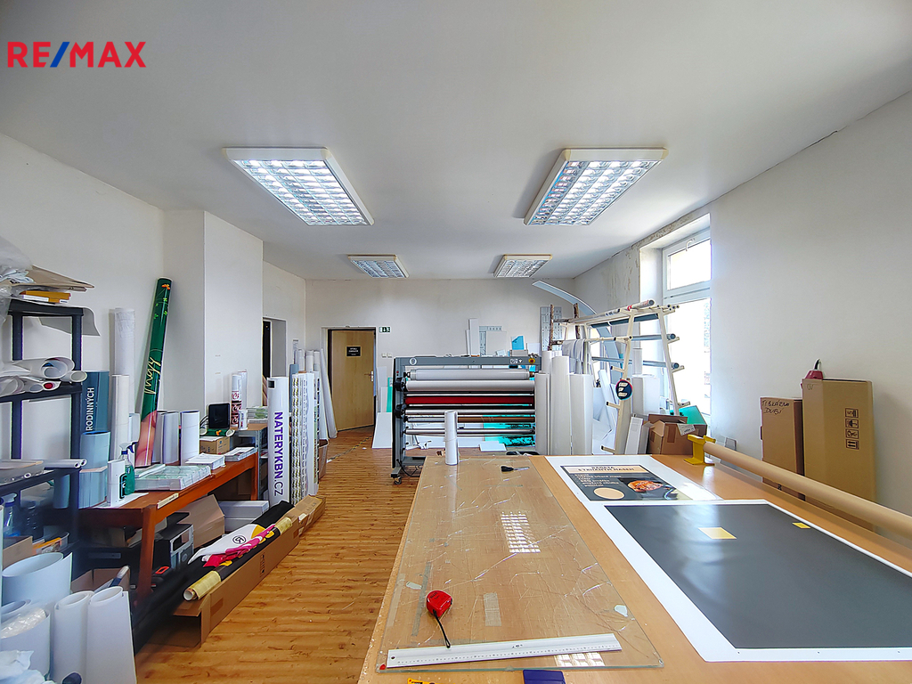 V 1. NP se nachází prostory pro ofsetovou tiskárnu s knihárnou (4 velké místnosti) sociální zázemí zahrnuje dvě samostatná WC, sprchu a další technické zázemí.
