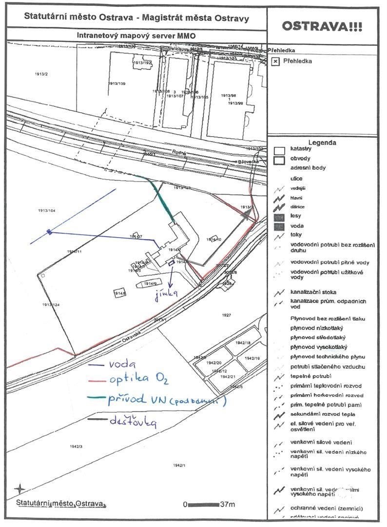 2x podzemní linka vysokého napětí (2 x 250kVA, hlavní jistič 360A)