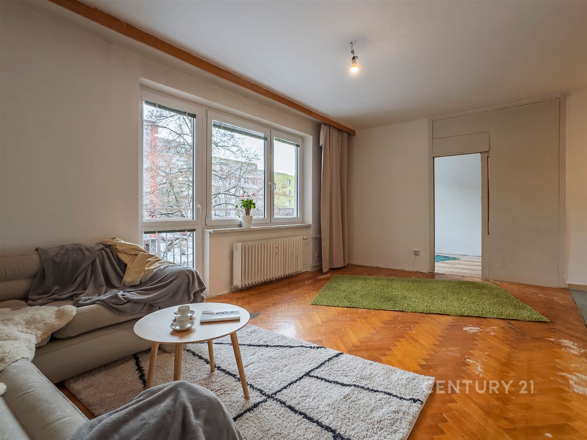 Prostorný obývací pokoj je propojen se vstupním prostorem a působí velmi příjemným a vzdušným dojmem. Každý ze tří dalších pokojů má samostatný vstup, stejně tak jako kuchyně. Kuchyni lze v případě zájmu propojit s obytným prostorem. Koupelna a WC jsou oddělené. U vstupu do bytu se nachází prostorná komora k uložení věcí.