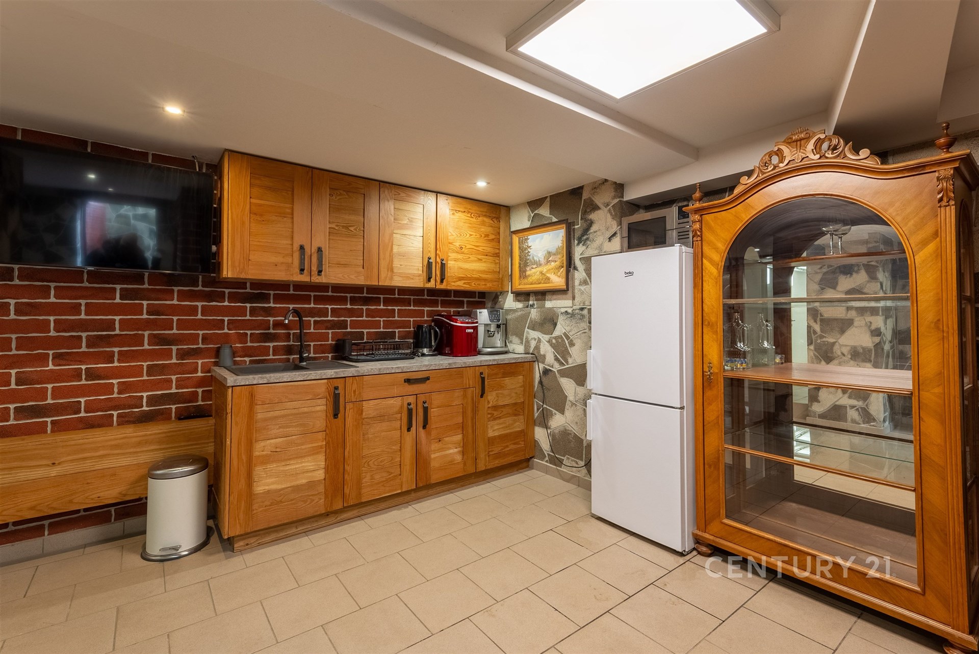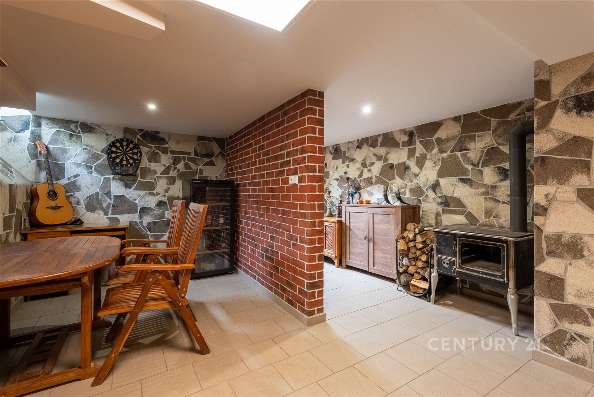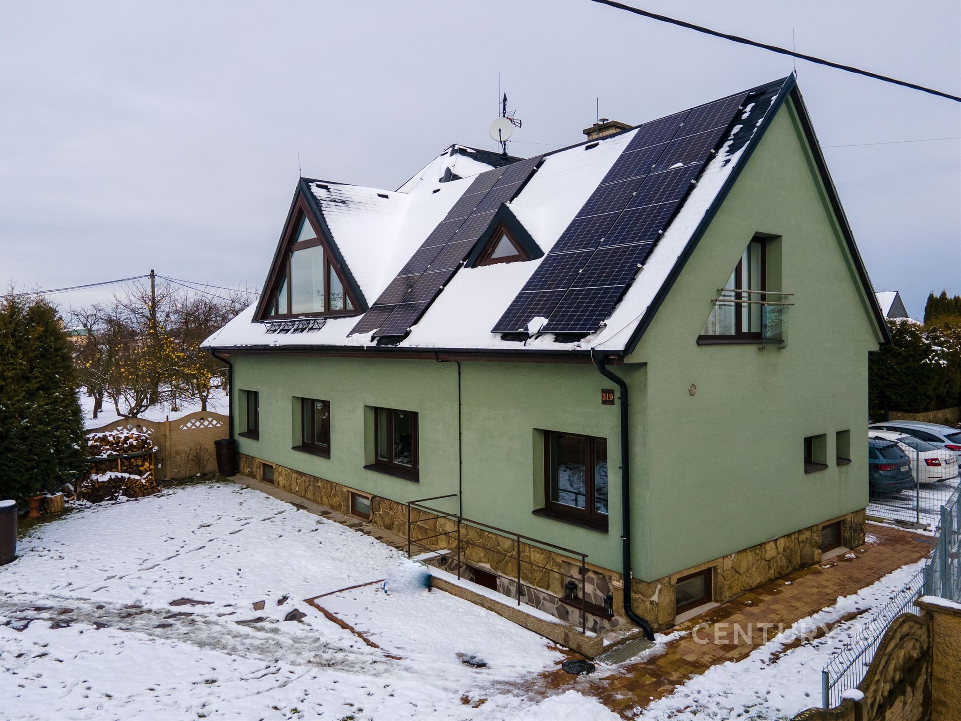 Sklepní podlaží je přístupné z domu i z venku. Najdete zde stylovou vinárnu s kuchyní a krbem, dílnu, technické místnosti, koupelnu s vanou i sklad. V domě je instalována fotovoltaická elektrárna 9,54 kWp (2024) s baterií 10 kWh a možností využití virtuální baterie. Vytápění zajišťuje kombinace podlahového topení, Heatflow a krbu.
