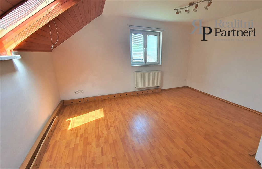Bytová jednotka se skládá ze dvou nadzemních podlaží. V 1NP je vstupní hala, koupelna se samostatným WC, obývací pokoj s kuchyní. V 2NP se nachází dva obytné pokoje plus prostorná šatna, kterou lze využít jako pokoj.