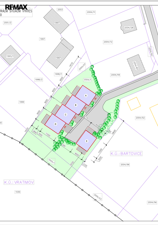 Jedná se o celkem 4 řadové domy a jeden samostatně stojící dům. Velikosti jednotlivých pozemků jsou uvedeny samostatně na konci inzerátu.