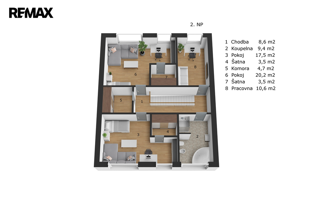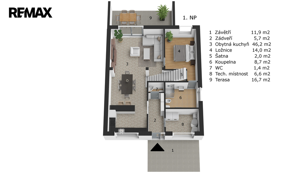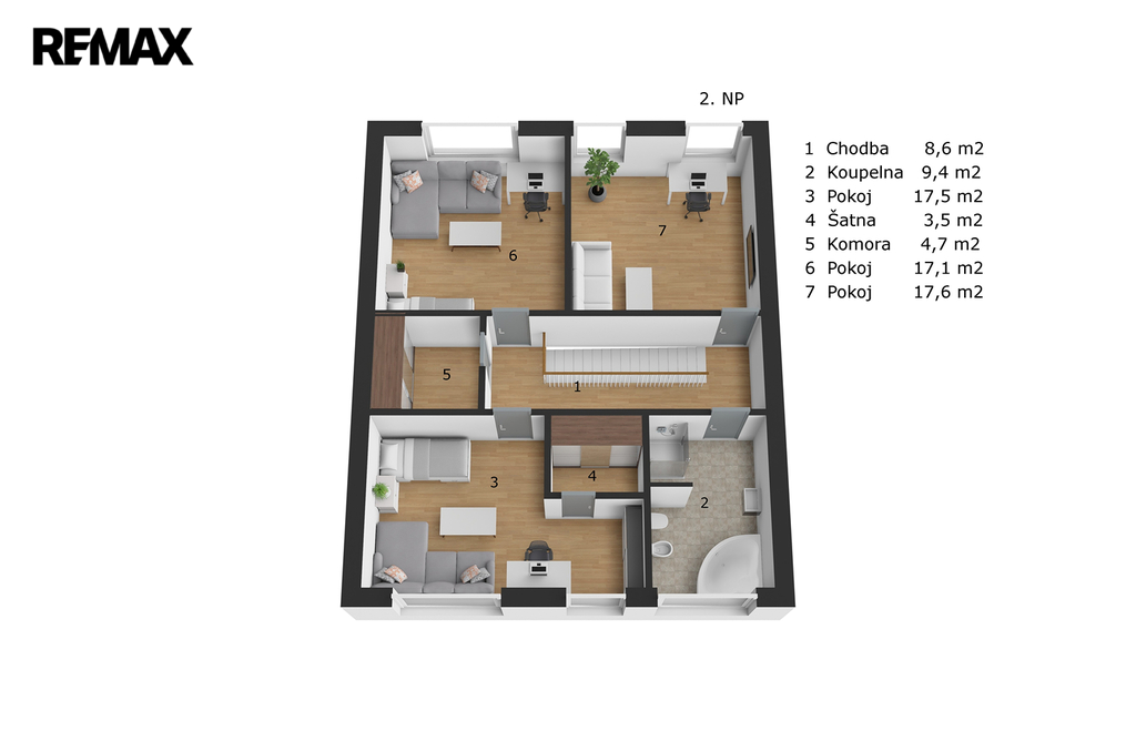 V ceně není dokončení interieru – podlahová krytina, dveře + zárubně, koupelny a WC, kuchyňská linka. Po dohodě lze zajistit dodavatele.