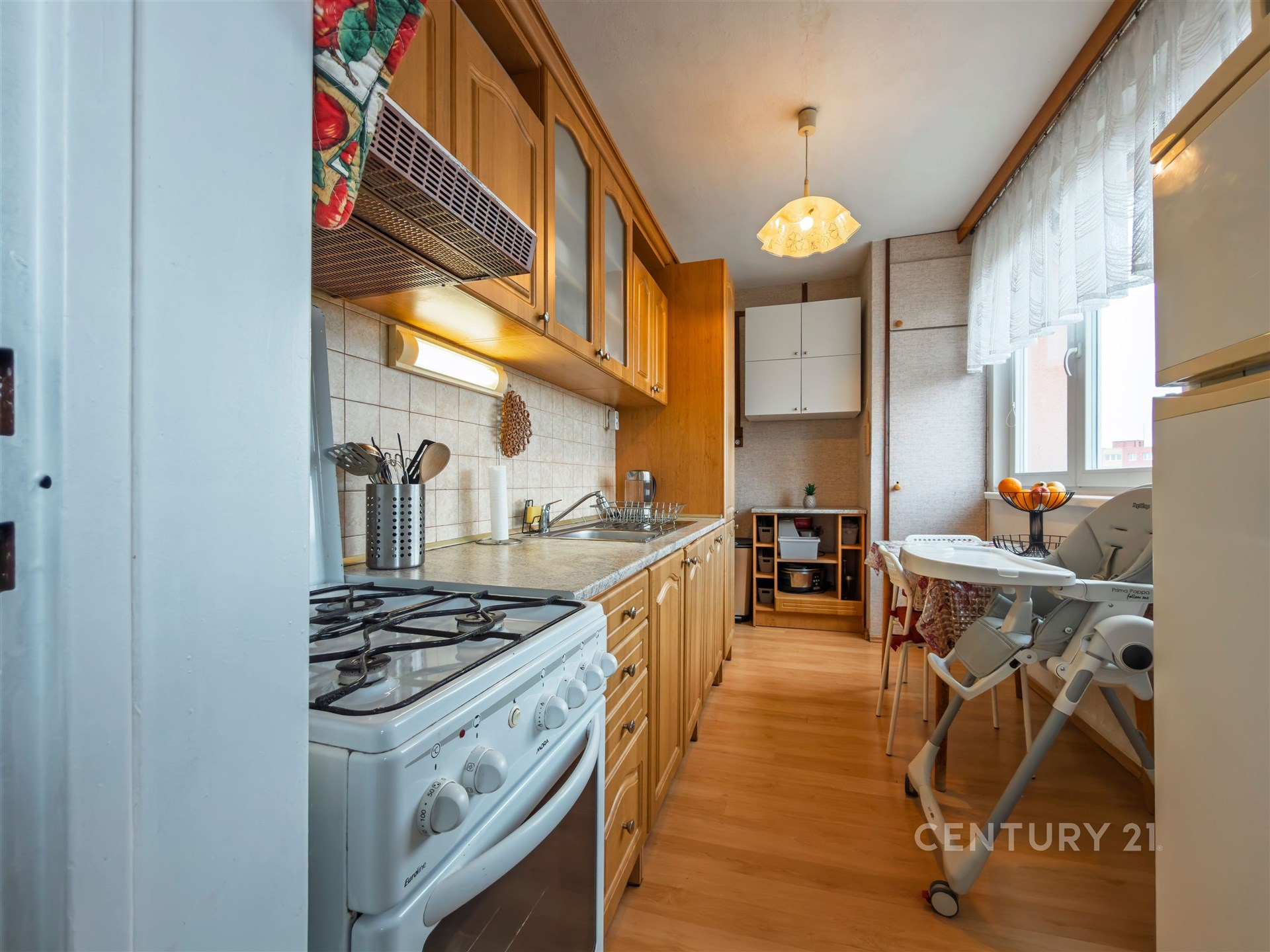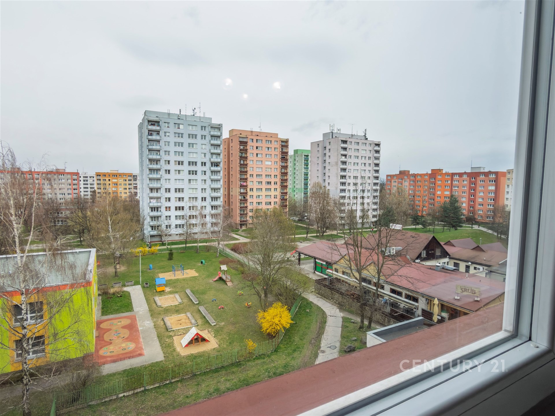 Díky umístění ve vyšším podlaží je byt krásně prosvětlený a nabízí příjemný výhled bez toho, že byste koukali sousedům do oken.