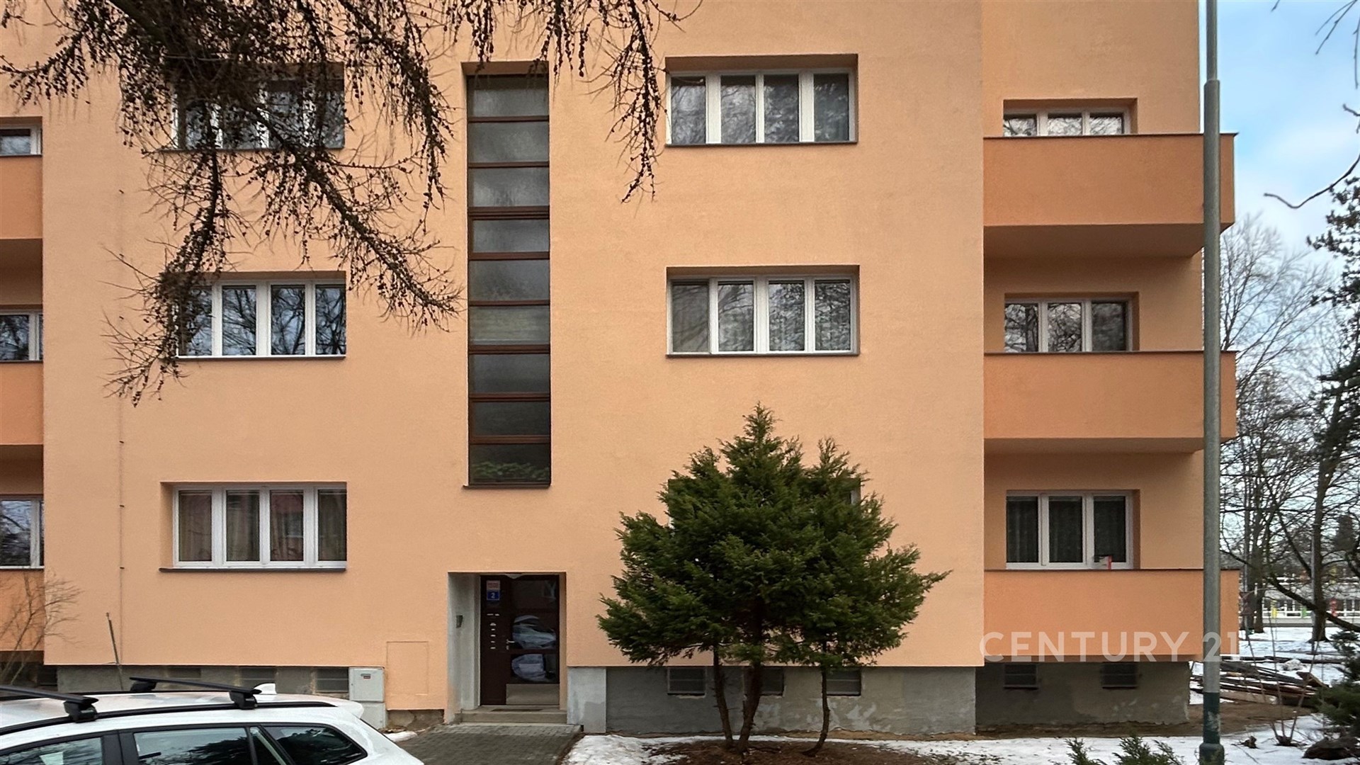 Dům je obklopený vzrostlými stromy a zelení, které vytvářejí příjemné a klidné prostředí pro bydlení. Byt je situovaný ve 2. nadzemním podlaží, což zajišťuje komfortní přístup bez nutnosti výtahu a zároveň dostatek soukromí.