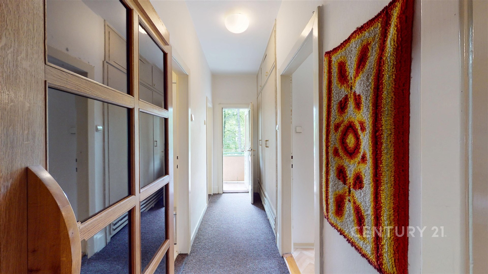 K bytu náleží dva balkony orientované do klidné části mezi stromy.