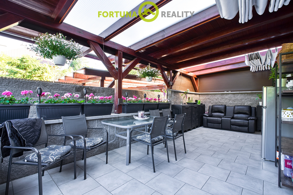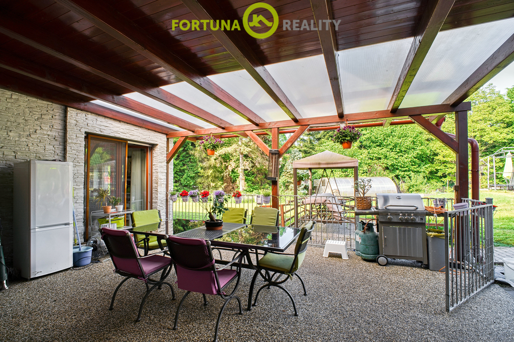 Exteriér nemovitosti je obklopen vzrostlou zelení a nabízí dostatek prostoru pro relaxaci či aktivní odpočinek. Zahrada s pergolami a krytým bazénem na pozemku, poskytuje idylické zázemí pro rodinné oslavy nebo klidné chvíle s knihou v ruce. Velký pozemek je také ideální pro možné budoucí úpravy a naplnění vlastních představ o zahradní architektuře.