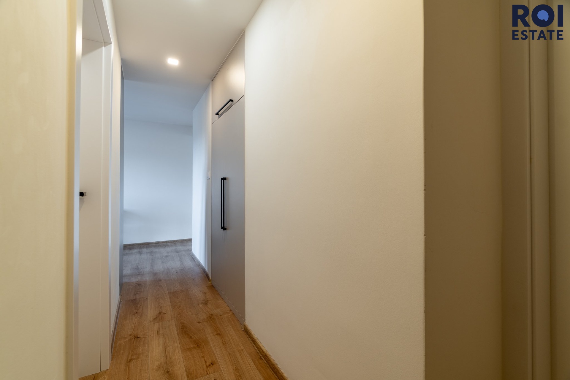 Čerstvá rekonstrukce dodala bytu svěží a moderní charakter. Už při vstupu Vás přivítá chodba s vestavěnou skříní, odkud se dostanete do komory s pračkou. Nechybí ani koupelna s vanou a toaletou. Ze stejné chodby vede vstup do světlé ložnice, která působí útulně. Na konci chodby se pak otevírá dispozice na dvě části: vlevo se nachází velká rohová kuchyně s jídelním koutem a kompletními vestavěnými spotřebiči – troubou, myčkou, mikrovlnkou i lednicí s mrazákem. A vpravo? Prostorný obývací pokoj s pohodlnou pohovkou, odkud je vstup na menší balkón, který se ideálně hodí jako sušárna.