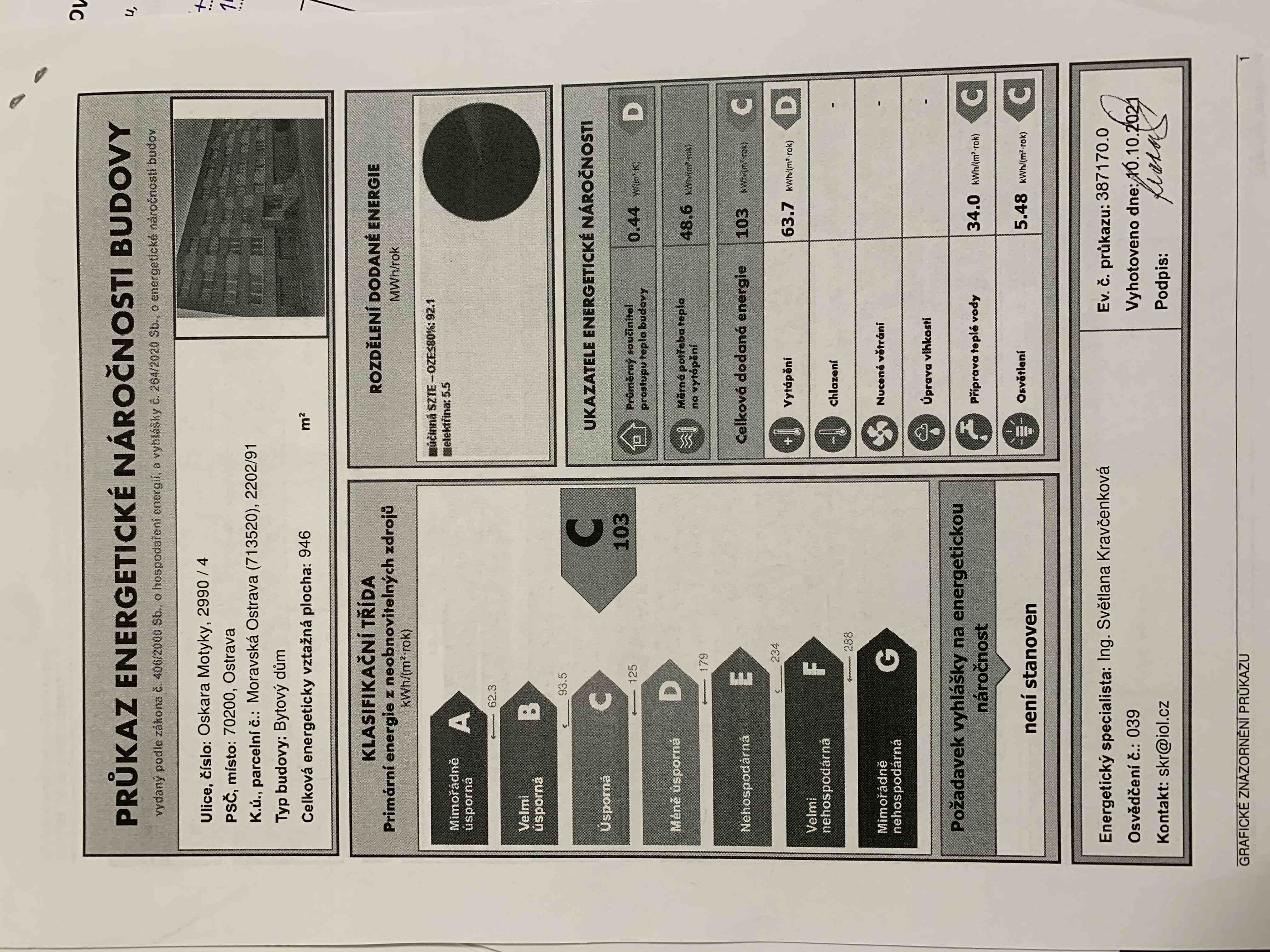 - Energetický ukazatel podle vyhlášky: č. 264/2020 Sb.