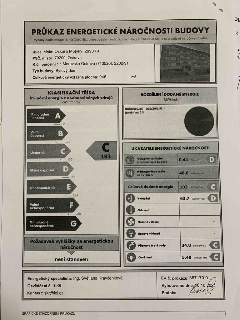 - Energetická náročnost budovy: G - Mimořádně nehospodárná