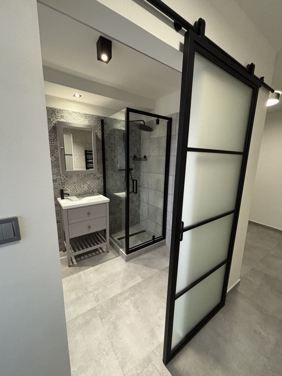 Kuchyně je vybavena moderní kuchyňskou linkou se spotřebiči – pračkou, ledničkou, troubou, varnou deskou a digestoří. V obývacím pokoji a ložnici jsou položeny plovoucí podlahy. Koupelna disponuje sprchovým koutem, umyvadlovou skříňkou a toaletou.