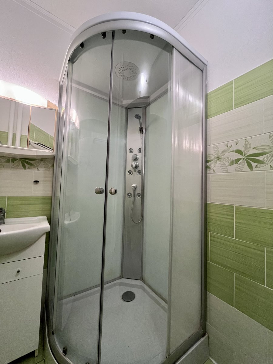 Dispozice bytu nabízí vstupní chodbu s vestavěnou šatní skříní, ze které se pohodlně dostanete do všech místností. Byt má jeden průchozí obývací pokoj a jeden samostatný neprůchozí pokoj, který poskytuje dostatek soukromí. Koupelna je vybavena sprchovým koutem, toaleta je oddělená.