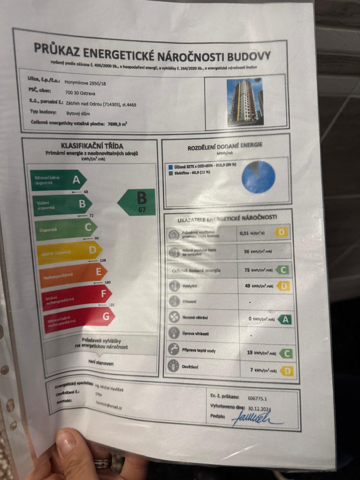 - Energetická náročnost budovy: B - Úsporná