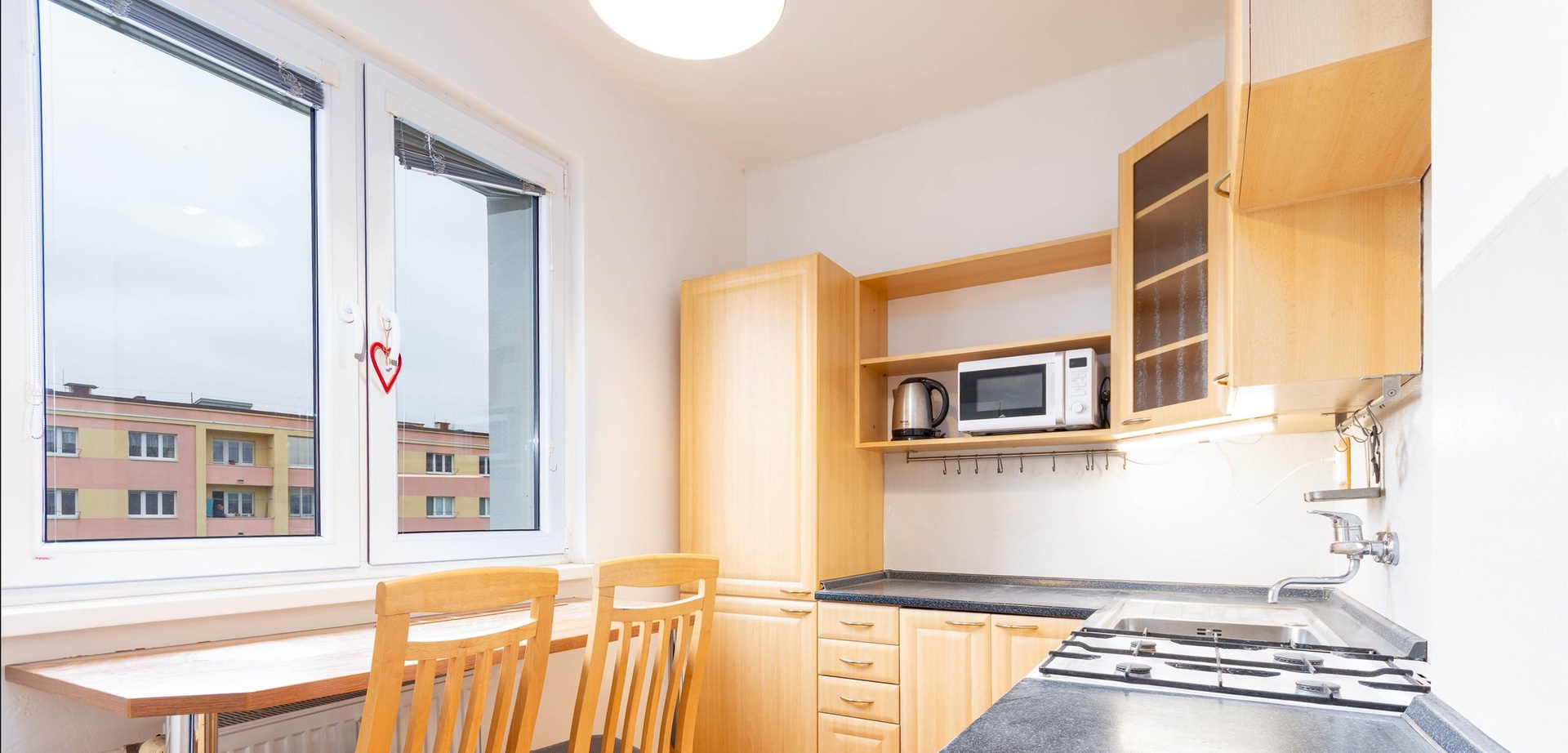 Byt o výměře 56 m² nabízí tři samostatné pokoje, což jej činí ideální volbou pro studenty nebo mladý pár. Kuchyň je vybavena ledničkou s mrazákem, plynovým sporákem, troubou, mikrovlnnou troubou a disponuje dostatkem úložného prostoru. Koupelna je vybavena vanou, umyvadlem a pračkou. Toaleta je samostatná. V prostorné chodbě se nacházejí vestavěné skříně. Byt je čerstvě vymalovaný a připraven k nastěhování.