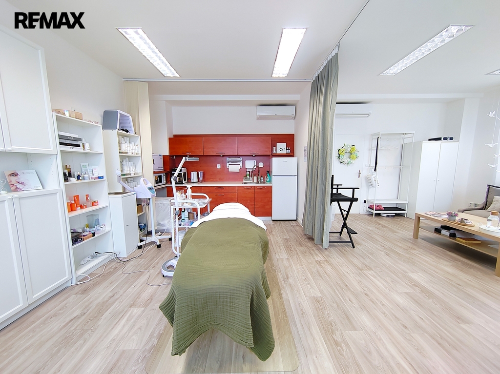 Prostor je v současnosti využíván jako kosmetický salon a je plně připraven k okamžitému zahájení podnikání bez nutnosti dalších investic.