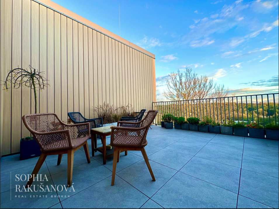Tento jedinečný byt kolaudovaný v roce 2023 se pyšní největší terasou v celém projektu a dechberoucími výhledy na panorama města.