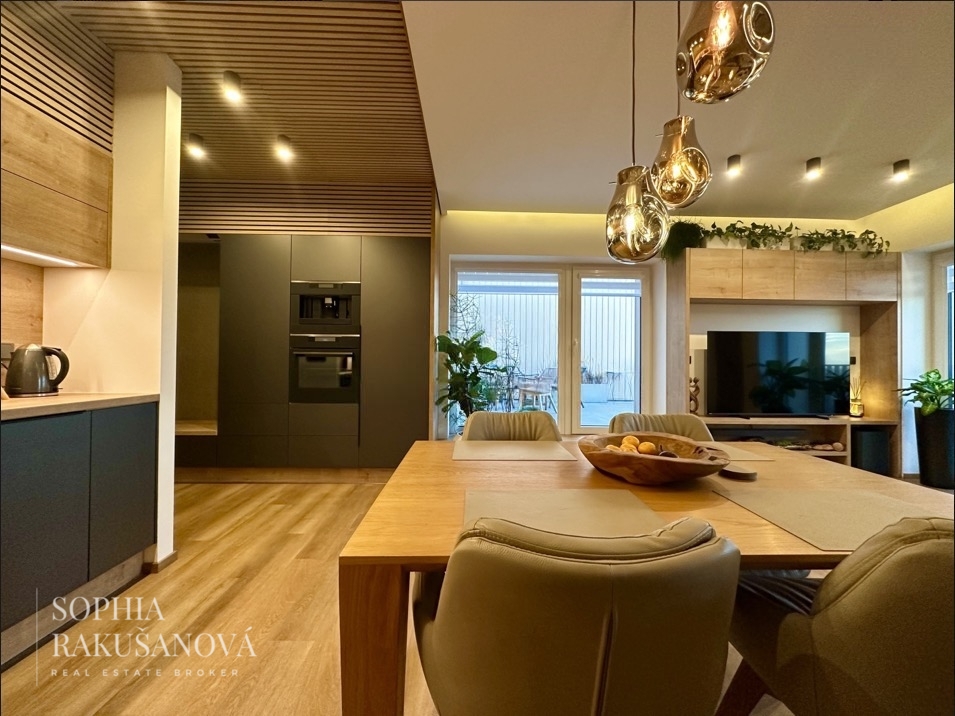 Velkým benefitem je terasa s vířivkou o rozloze 24 m², ideální pro relaxaci, grilování či romantické večery.