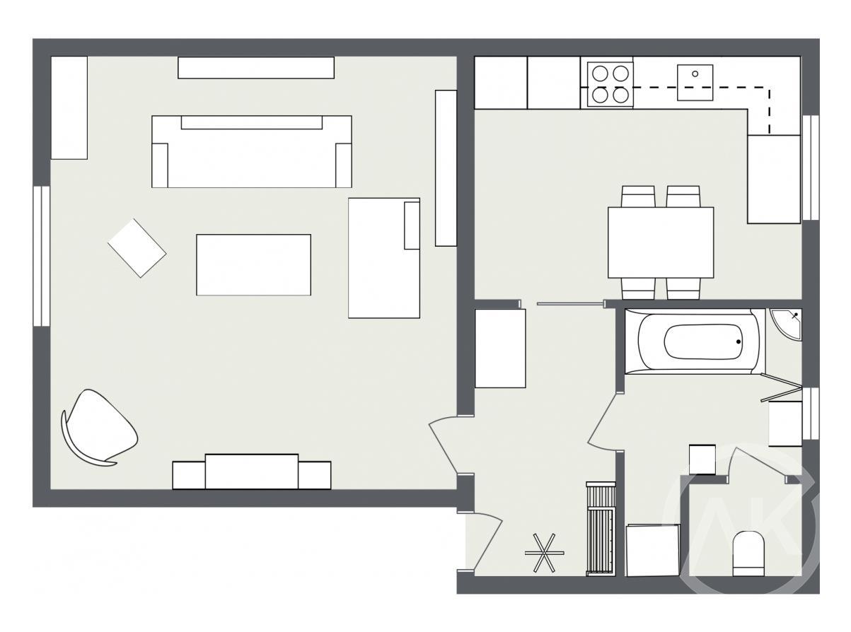 - Dispozice bytu: 1+1