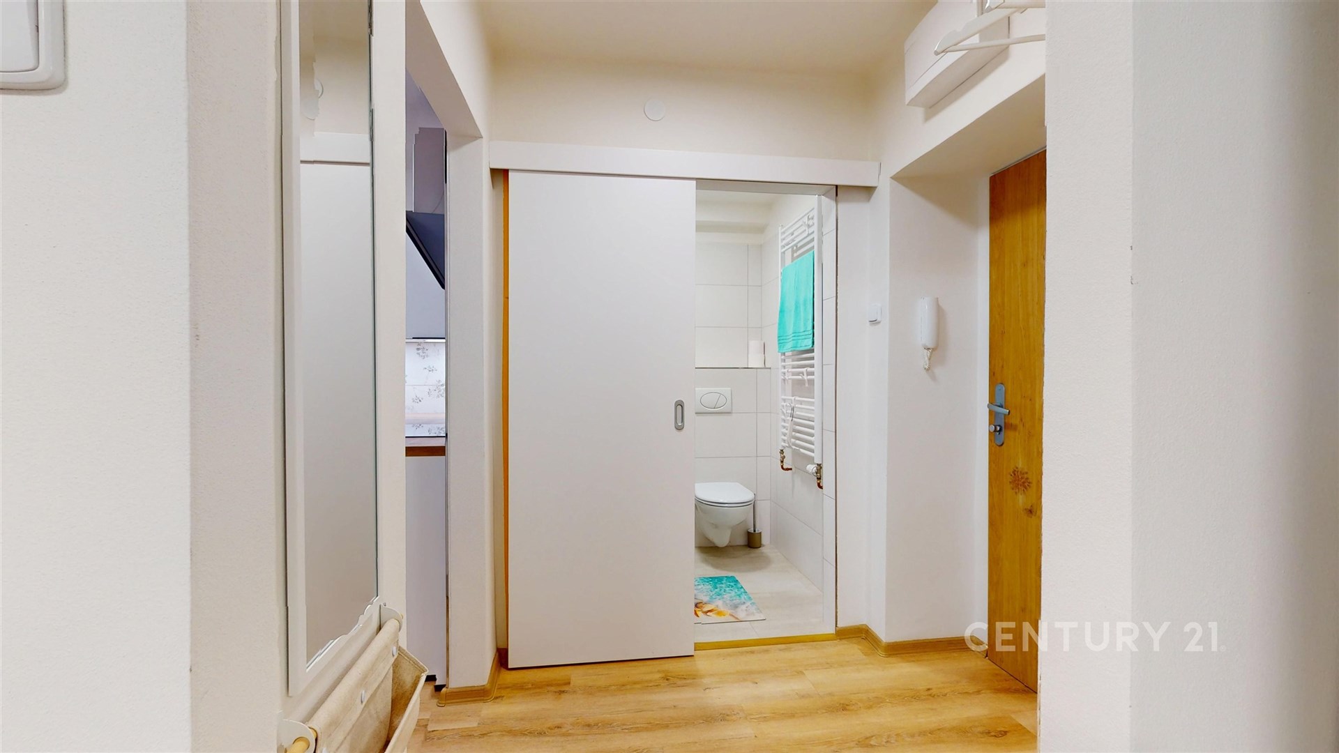 Při vstupu do bytu vás přivítá předsíň, ze které se dostanete do všech místností.